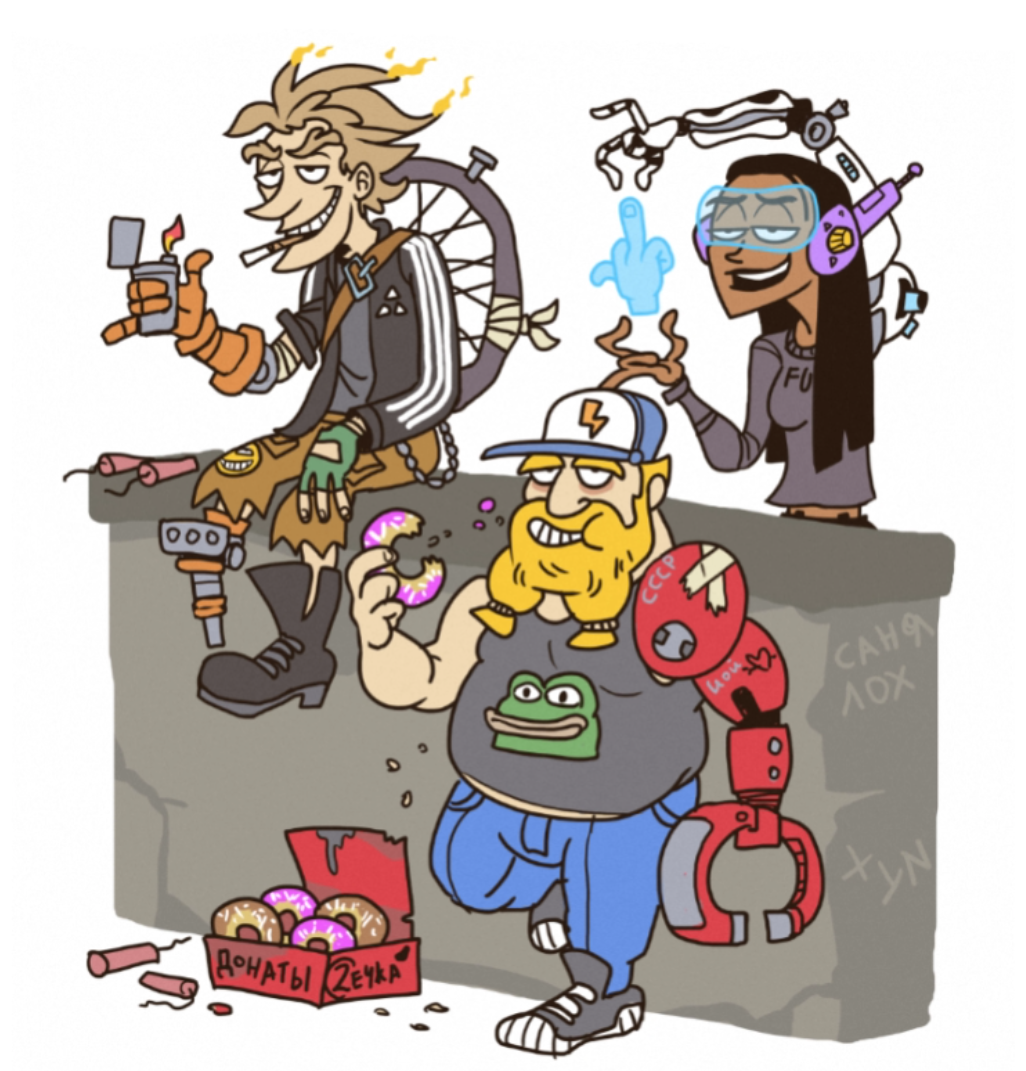 >Меня поражают что все новые герои - это какая-то левая хуета не имеющая абсолютно никакого отношения к Овервотчу >какой-то ебучий робот поднявший восстание, какой-то ебучий пидорас с шипами на спине, какая-то королева пустынных бомжей шлюха с арбалетом ору буквально концепт-арты первого овера
