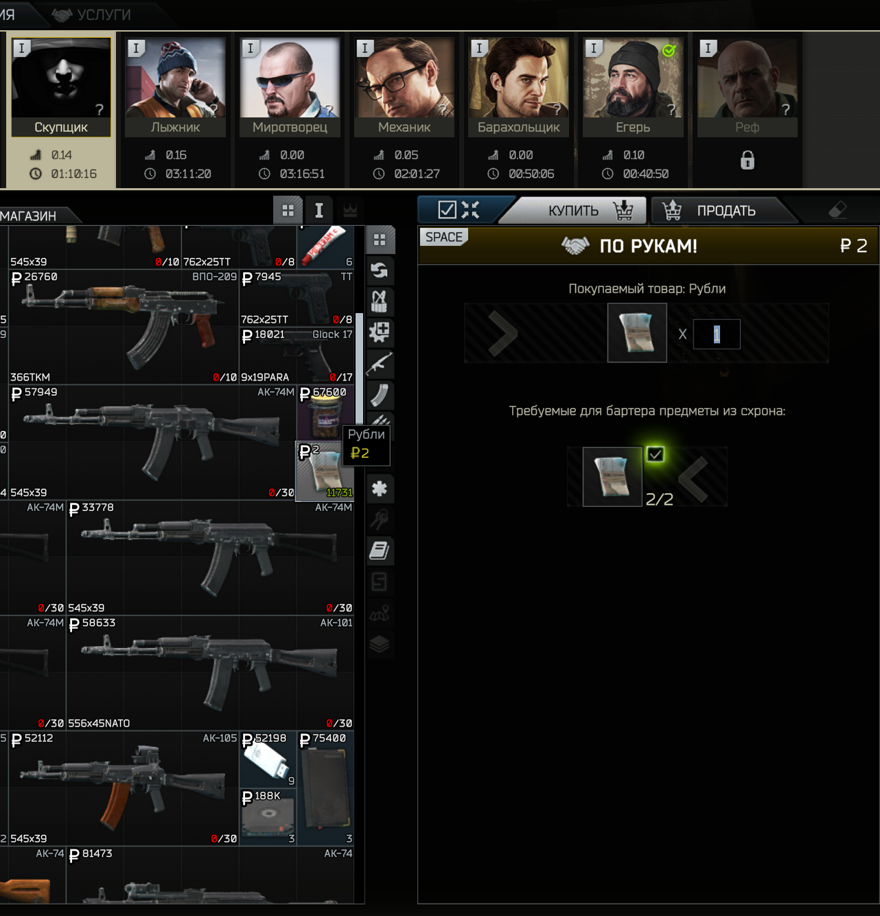 >>50262263 >Бонусом шёл дофаминчик за успешную эвакуацию и продажу любой хуйни на барахолке. Даже будучи нубом я понимал что денег дохуя. Никогда не бегал на скаве чисто полутать на деньги, только искать какие-то предметы на квест, учить карты. Радость была в найденном квестовом предмете, успешно заэкстракченным с галкой. При этом денег было дохуя, что-то около 50 лямов, учитывая что я играл на стандарте и параллельно апгрейдил схрон.