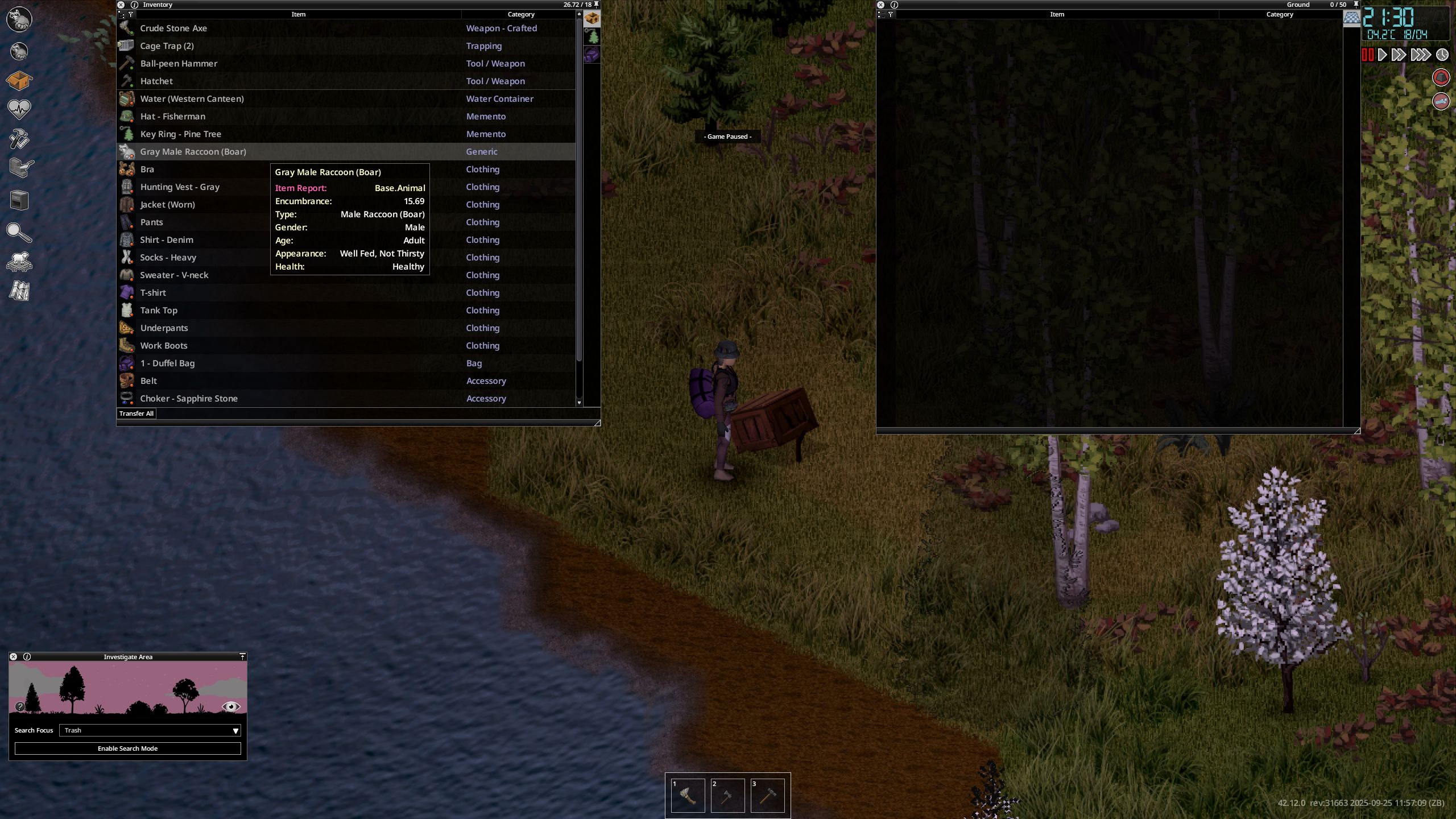 Спустя полтора месяца на CDDA смог остановить потерю веса зимней Рыбалкой, вкачав ее до 4. Если улов будет такой же и дальше - скоро начну набирать вес. Так что изначальная задумка для долгого выживания в лесу на CDDA на 42.12.1 с трейтами Рыбака и Знания Дикой Местности работает весьма неплохо. Если отъемся до 84 кг - может даже сгоняю обратно в Малдро похулиганить на окраинах с бейсбольными битами, я их уже десяток настрогал.