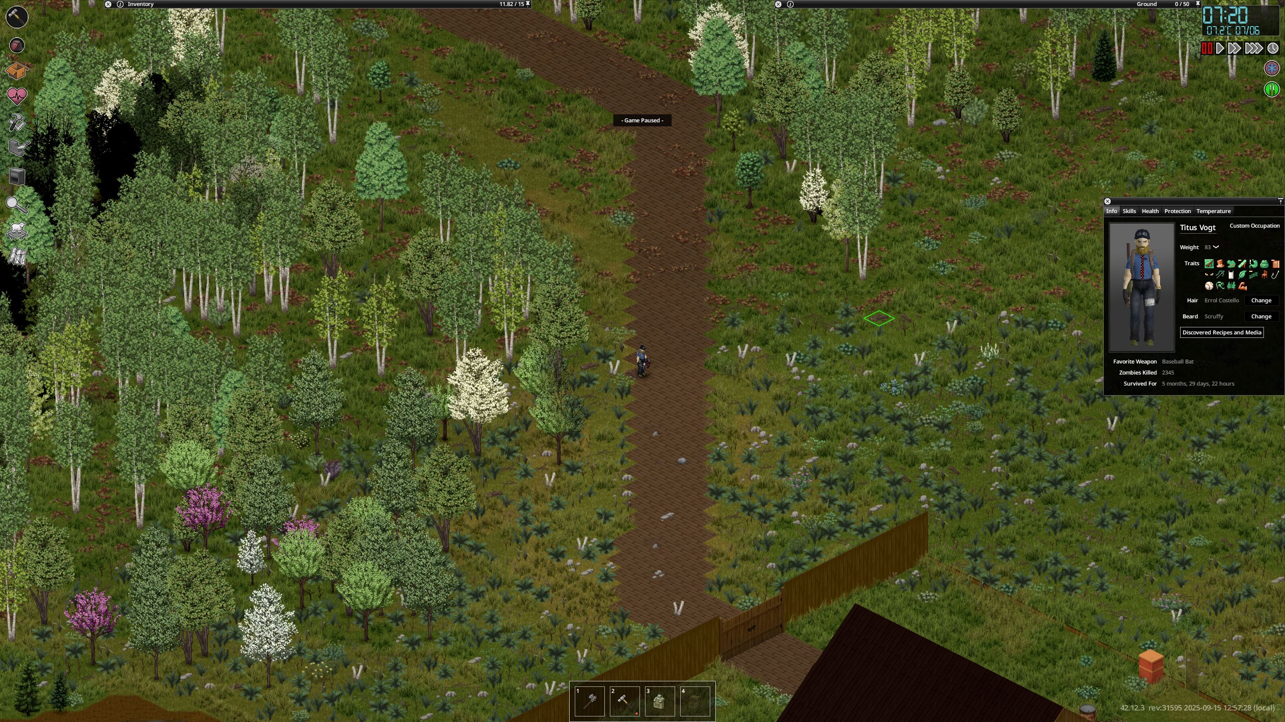 >>50343563 Я вот сейчас ради интереса создал новый сейв на CDDA, стартанул таким безработным челиком у которого все есть для долгого выживача. И Рыбалка и Знание Дикой Местности. Резьбу со стартовым 1 лвл даже без книжек можно будет загриндить до 9 для бейсбольных бит, Длинное Дробящее за счет трейта Бейсболиста тоже будет хорошо качаться, Прочность туда же, разве что Организованного не стал брать (тогда бы остался 1 поинт лишний, да и для меня этот трейт не принципиальный), взял вместо него Низкую Жажду (потому что на долгой игре постоянно доливать воду начинает надоедать) и новый трейт Crafty чтобы опыт у крафтовых проф бустануть. Если норм пойдет - может на нем и останусь, а то в пачнотах на 42.12.1 была заметка про х10 потребление топлива генераторами в сейвах с 42.12.