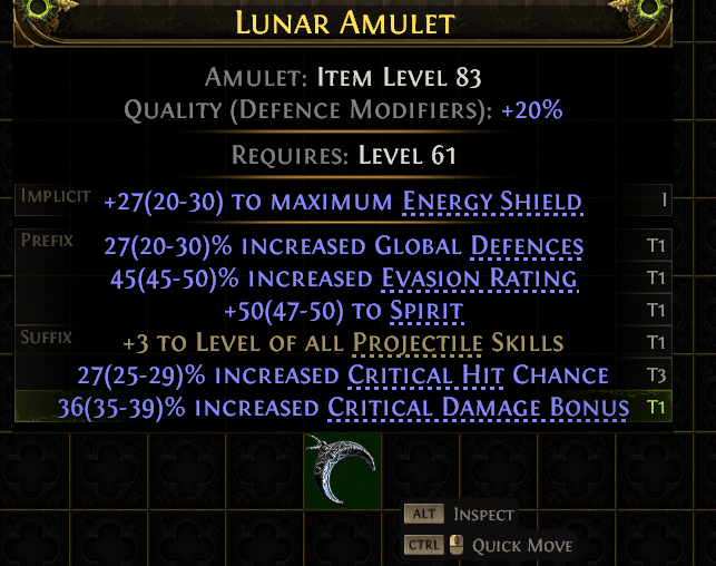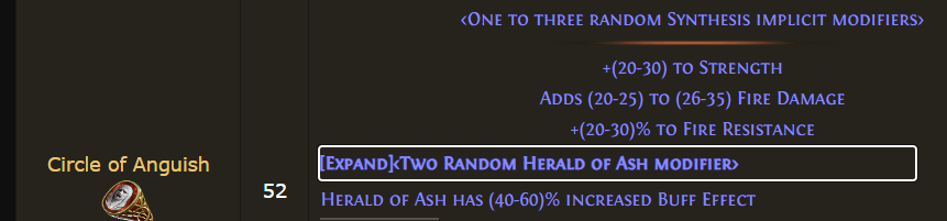 >>50290434 Потому что я не помню требования уровней по тирам. Но явно же т2 тир требует более высокий уровень, чем т6. И вобще странный этот эмулятор. Вкинул в амулет эссенцию на хп, дальше беру Omen of Homogenising Exaltation и Sinistral Exaltation , кидаю экз, получаю хп. Эмулятор пишет, что шанс был 50%. Это схренали? В префиксах есть еще какие то моды с тегом life?