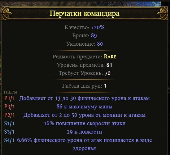 >>50252577 Ну да, iLvl - айтем левел. Для +3 к камням(т1 суффикс) надо чтоб у шмота был 75 илвл, а для т1 отдельных резов или для атрибутов уже 82 илвл нужен, поэтому в идеале для крафта 82 илвл предметы требуются