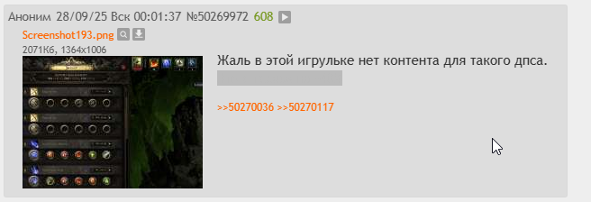 >>50259494 Ну да, я поепитек (хотя много играл в д2 будучи школотой, но пое таки больше на любимое д2 похоже чем д4 внезапно). Но не прям тру задрот со стажем в 10 лет. Первую часть попробовал и с удовольствием провел в ней 70 часов когда уже было известно про вторую. Ну я тогда дропнул потому что решил что начну уже полноценно во ве это вникать со второй части.