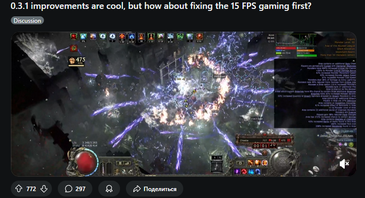 Не вижу настройки отображения урона. Как мне понять, наношу ли я криты вообще или нет. Че за говно. Экран смерти говно, где описание че убило, какой урон, какой оверкил. В ласт эпохе все расписано, все четко видно. Тут нихуя, вообще. Лужи не видно, че там пумкнуло на 6к хп под ногами не видно. Выкат торговой вкладки это апогей квола для пое. Да и то ингейм аук не смогли прикрутить, в чем проблема то