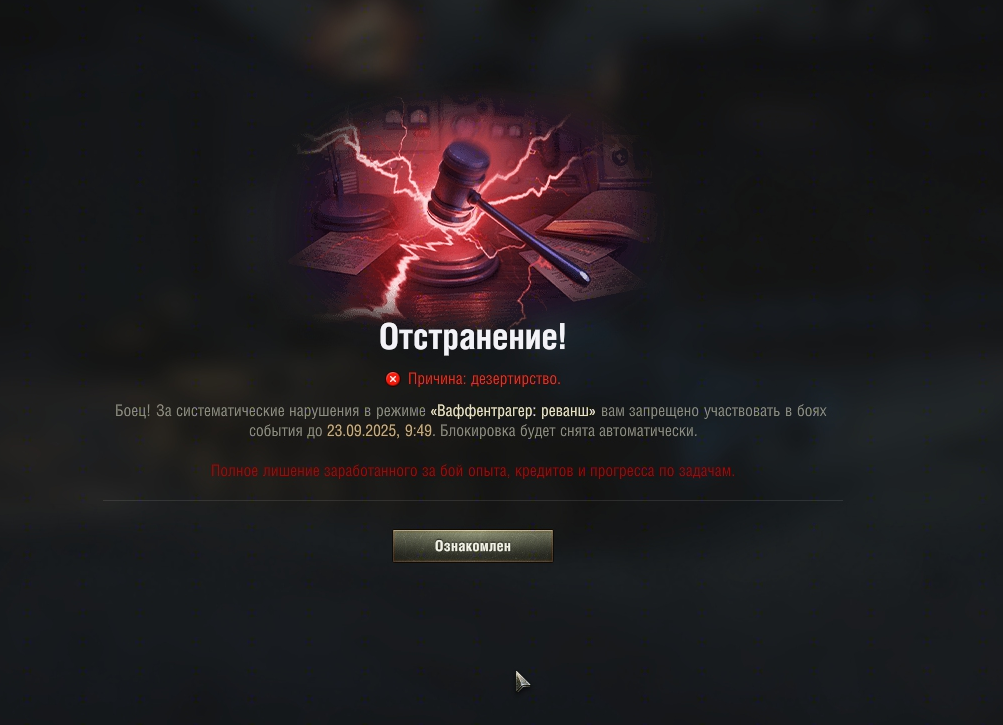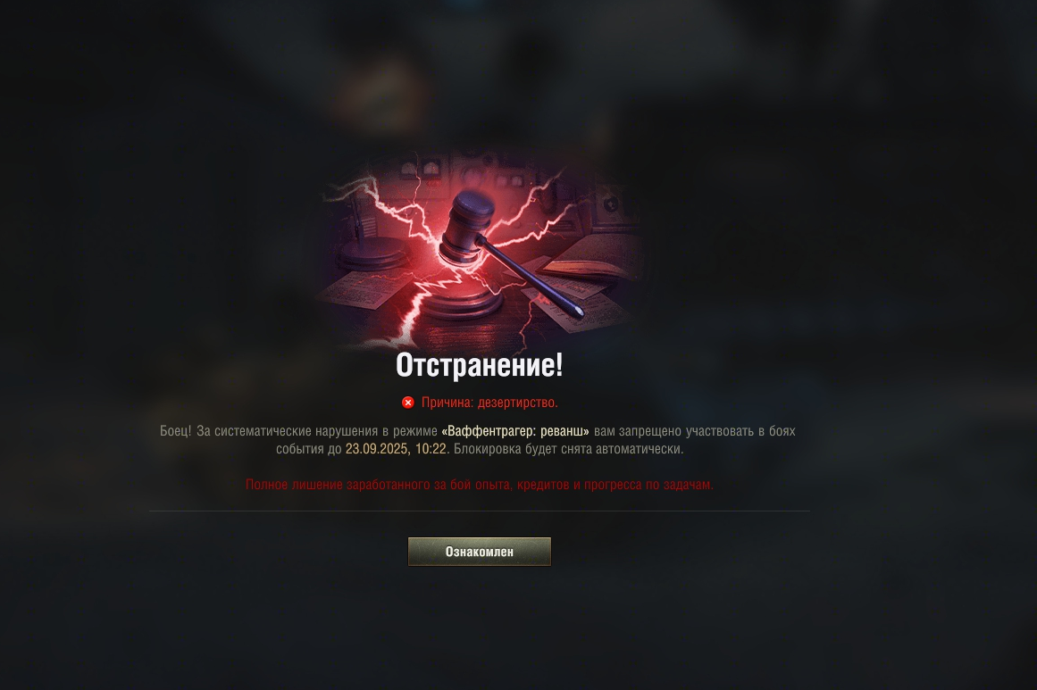 Сейчас в натиске вылетел из боя, там пинг пиздец скачет на ru2, еле зашел на сервер минуты через 4, танки все 10лвл висели "в бою" еще минут 20, потом когда освободились, никаких результатов боя в логе нет, и в стате не прибавился бой. Типа вообще все 14 игроков вылетели что ли и бой отменился?