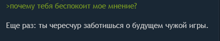 >>50256416 >>50256534 Поставьте себя на их место, в игре же буквально нихуя не происходит. Вы бы еще большую шизу выдавали лишь бы что то запостить в полумертвом канале, лол.