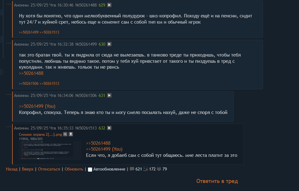 >>50256829 >Тем более Добродеев заявил, что планирует собирать обратную связь. Вот она - мне не нравится то, что я увидел Ну такое, у большинства игровых компаний с этим есть проблемы, глиста не исключение. Другой вопрос как это исправить. У меня были знакомые тостеры и они такую дичь рассказывали я ебу. Там вся суть тестирования танков была приехать в точку, пукнуть пару раз, написать отчет. А тут что? Нарисовано говно, да и кому не похуй, лично мне поебать как и большинству ЦА. Та самая ЦА не заходит на сайт, они новости узнают от юши или в клиенте игры. А там уже найдут кнопку в бой. >Потому что это уебище не понимает с каких хуев его ЗП формируется. Он как раз таки понимает, лол. Его ЗП формируется из нихуя, у людей не будут спрашивать нравится ли им говно которое нарисовали за пару часов, люди в игру играют, а не оценивают качество работы визуальной работы ивента который 10 дней продлится и это справедливо.