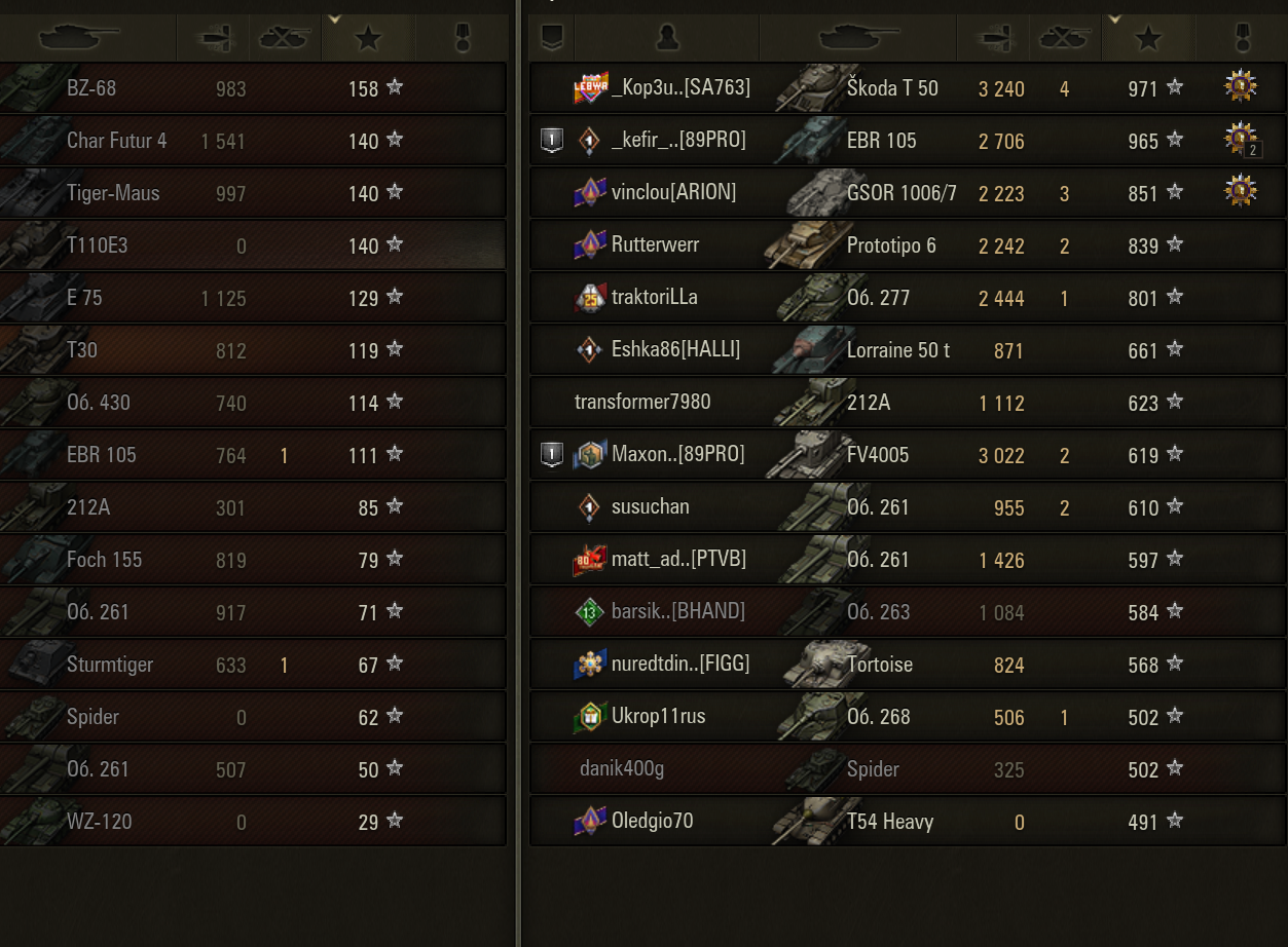 >>50266582 Да, ебать, скрытая имба, 3я с конца по метке. ИМБА, твердо и четко!!! Танк просто слишком хорош, чтобы на нем играли сильные игроки и поэтому отметка такая низкая.