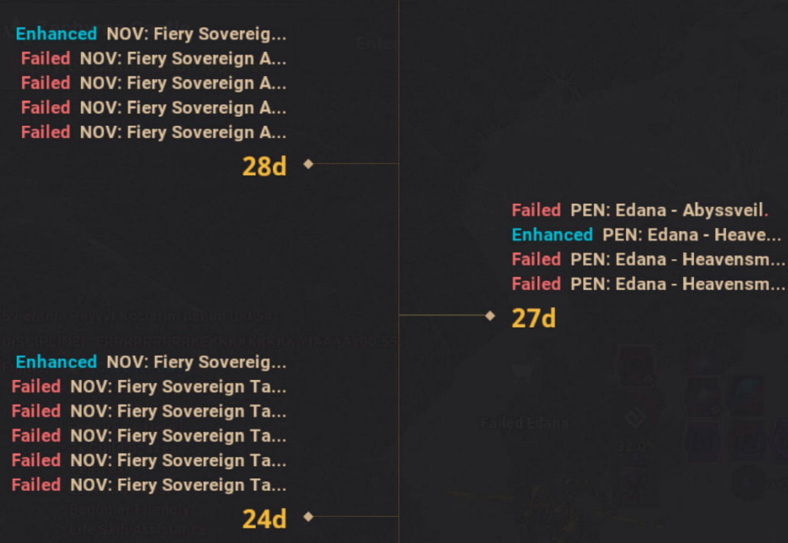 >>50584041 > как вы так качаетесь Чел, из гира там только ван и броня, бижу надо менять (та, что на пике анона, бесплатно достаётся). > где столько серебра нафармить новичку https://garmoth.com/grind-tracker/best-grind-spots После выпуска с сезона фармишь самый денежный спот из возможных, параллельно делая викли квесты на бесконечные зелья. Цель - дотянуть монстр ап и монстр дп до значений, соответствующих хонглиму. Потом стоишь хонглим, фармишь деньги на тет дебореки. Ещё из викли активностей бей Гармот (в ру версии - Камос) и боссов земли узкоглазых, так ты можешь получить её сердце (а можешь и не получить, но это не повод не бить) и через полгода получишь халявный ван. Фулл пен бс оружка у тебя должна быть после выпуска (ну и процесс её получения должны сделать проще после запуска академии Олвии). Алсо, если не фармишь, но комп включен, ты должен рыбачить. Максимальное снижение времени афк рыбалки, минимум 1200 мастери, постепенно ползи в сторону 2к мастери. Место - Велия. Найди гильдию, чтобы раз в неделю получать 1,2 лярда с гильдбоссов. Каждый день сдавай коробки еды. > Бижутерию особенно дорого точить. Какую бижу ты там точишь? В игре только 2 бижи - дебореки и каразады. Первые ты только покупаешь (тет носишь, пен меняешь на 9-й калозад), вторые точишь либо при острой необходимости (не думаю, что она у тебя есть), либо только для 9 -> 10. Не покупай хуйню, не точи хуйню, не делай вредные квесты на апгрейд гира (вредные = их выполнение дороже, чем покупка гира). Все твои покупки должны толкать либо рост гса, либо мастери рыбалки. За 7 месяцев очень чилловой игры сделал пикрил, гриндил бы больше - мог бы сидеть с двумя 9-ми калозадами. Наконец, если не уверен в прогрессии - спрашивай. Буряты насыпают кучу халявы, но если тратить её на поебень, наебёшь себя на десятки миллиардов.
