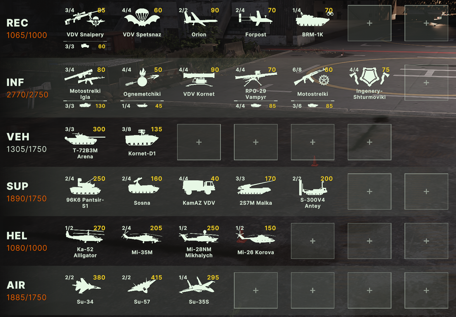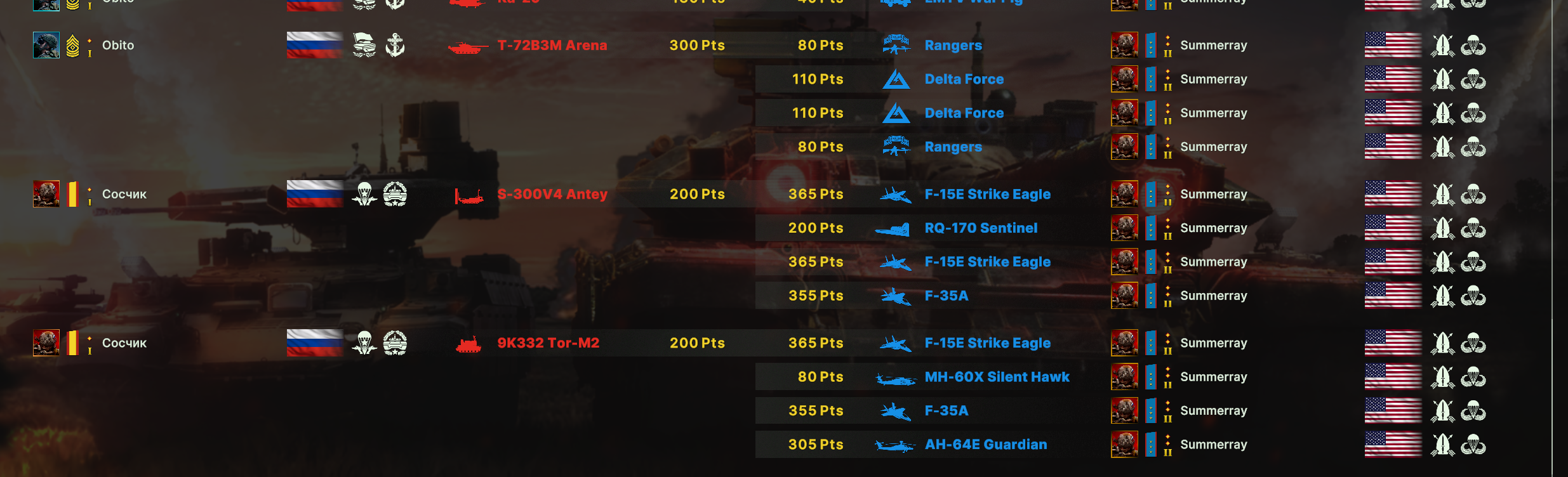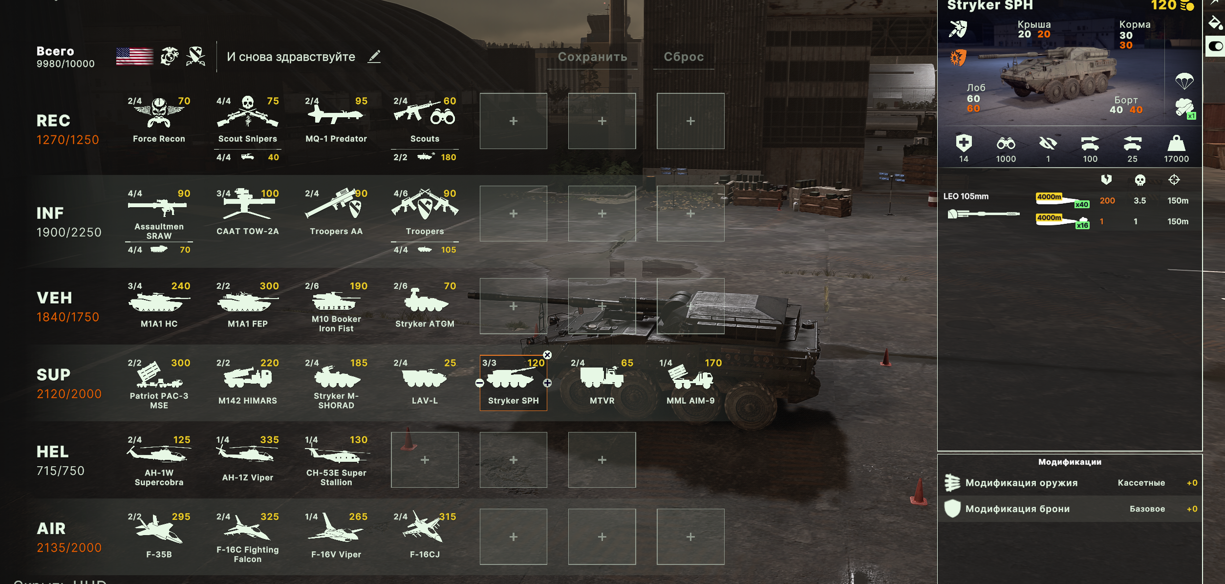 ССО + Страйкеры - пизда. Саппорт очков просто теперь нет. Даже фулл комплект ПВО + Химмарсы не взять. Зато можно срать пехотой и страйкерами. М-60 лопается с 1 попадания ПЗРК РФ как и все вертолеты кроме апача.