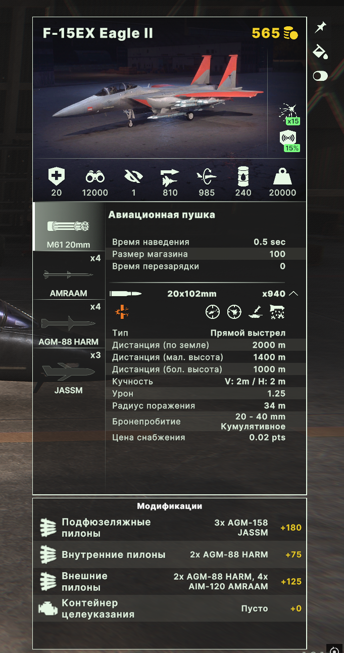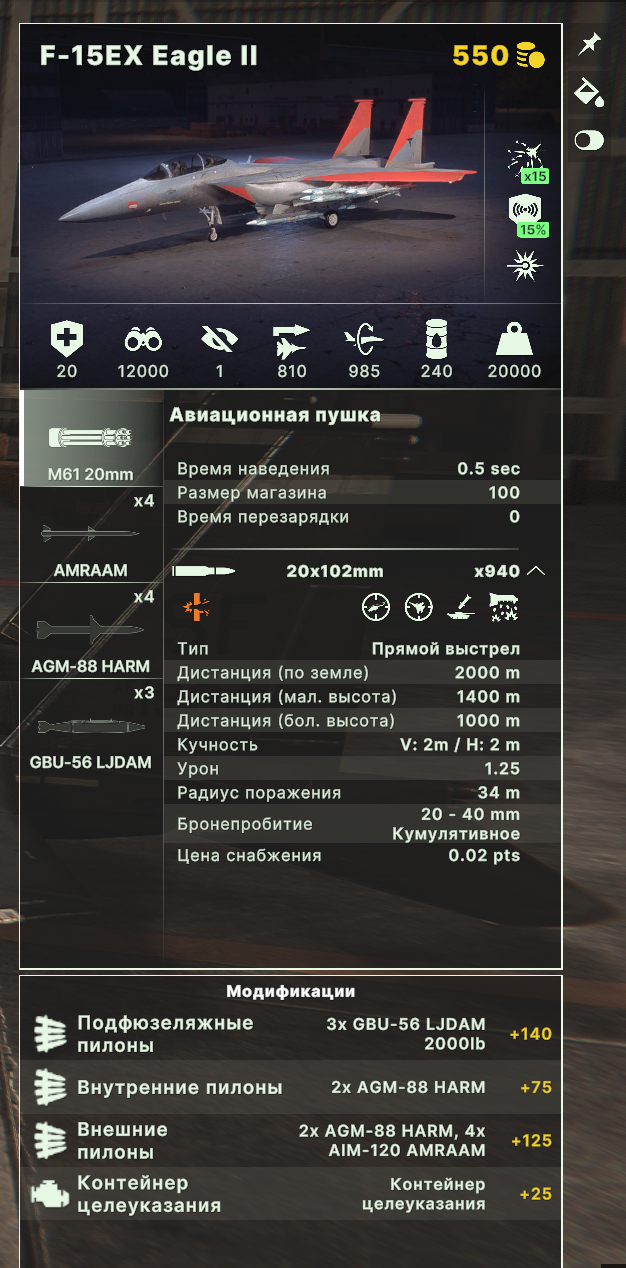 - AGM-88 HARM: цена снабжения увеличена с 30 до 40,