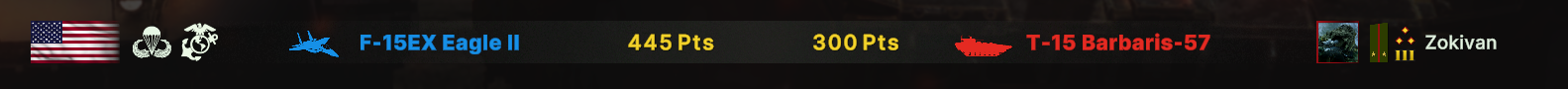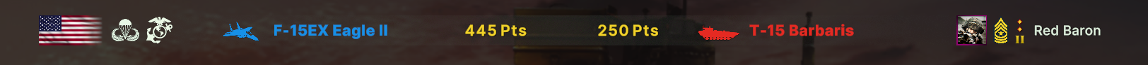 - T-15 Barbaris: Боевой модуль кинжал цена увеличена с 50 до 100,