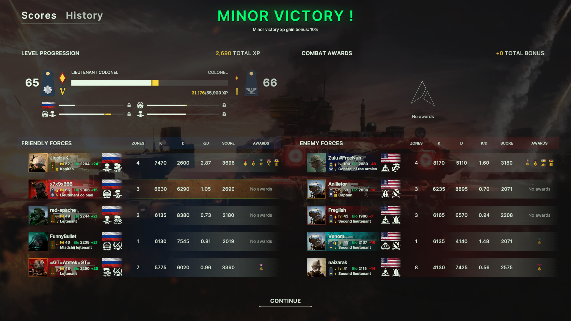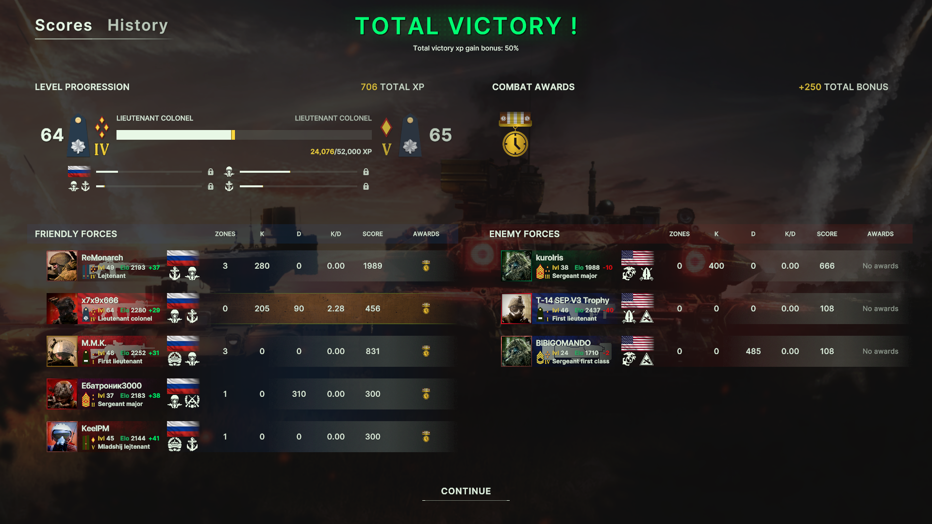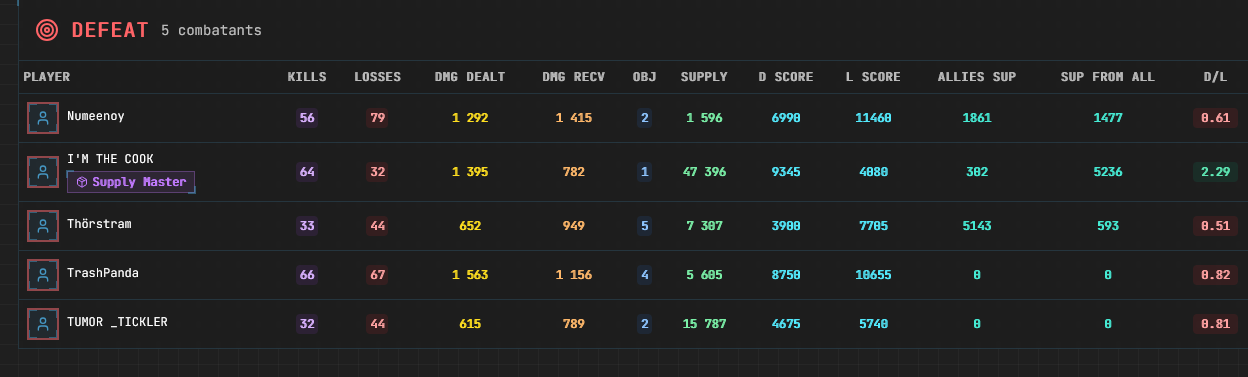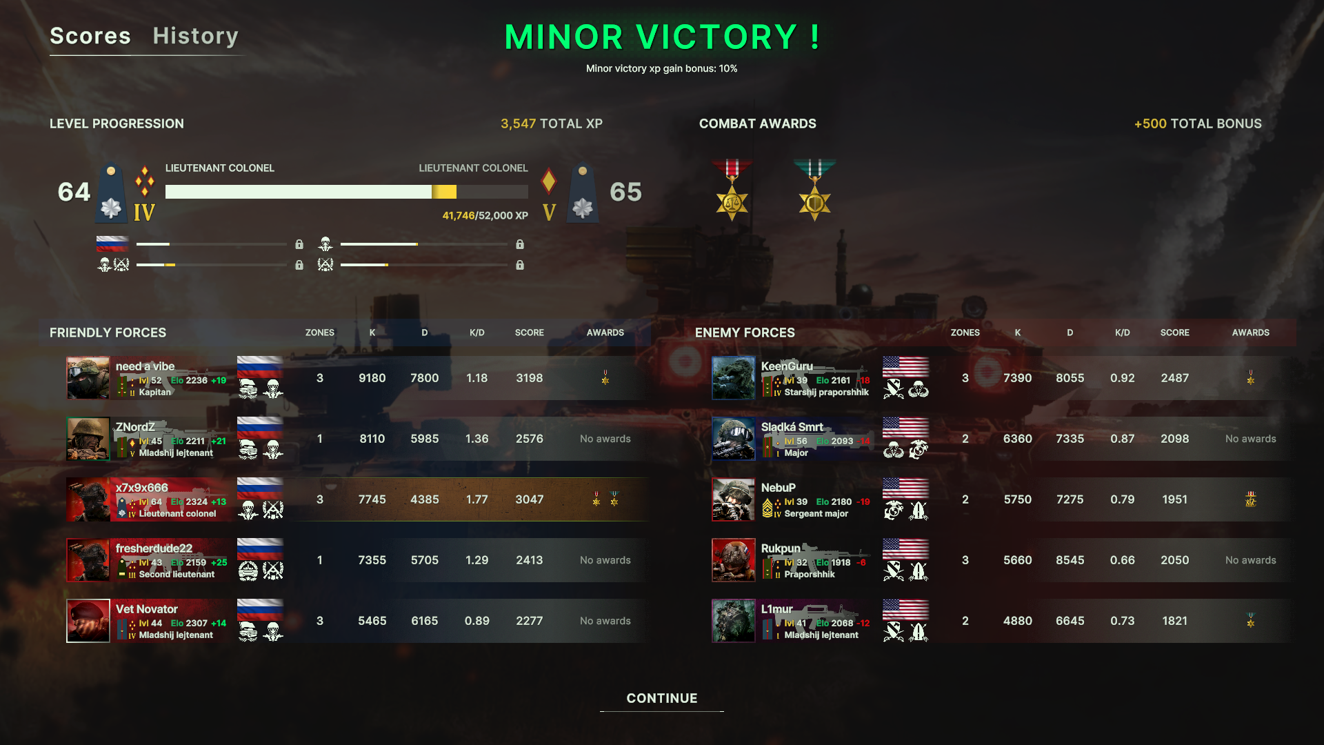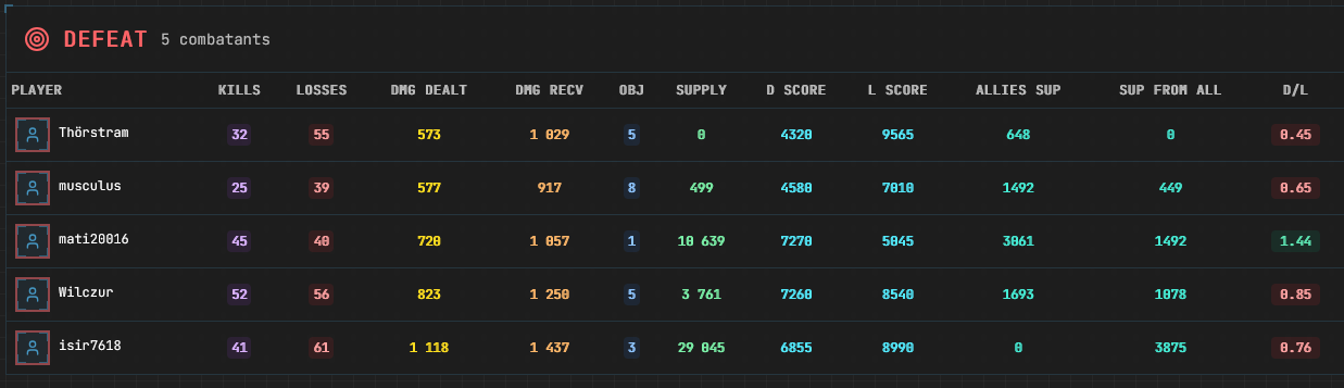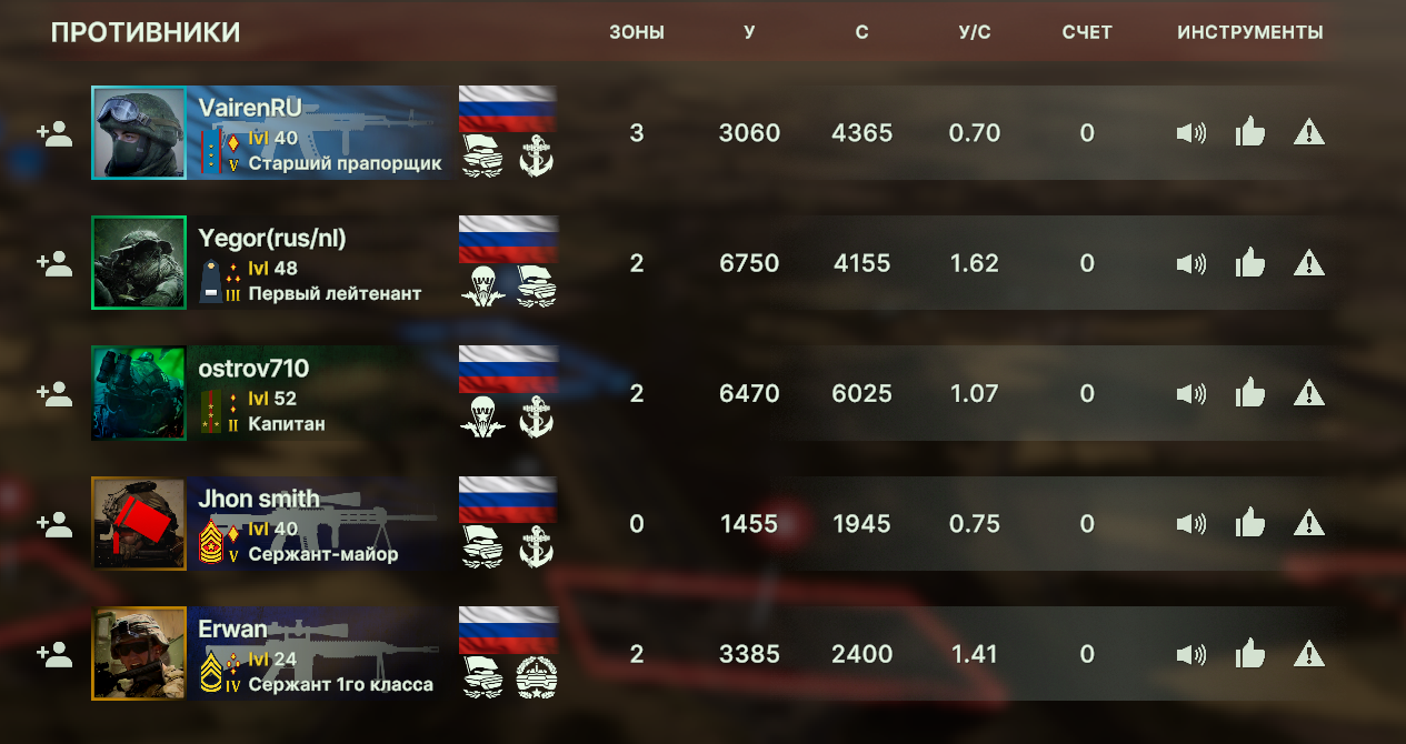 Ладно, до следующего патча больше не зайду, за 2 часа либо мы, либо противники тупо сдаются спустя пару минут. Выходит почти как тарков, 10-15 минут ищет/грузит, катка 2 минуты. Только в таркове хоть если руки не из жопы, то время жизни продлить как-то можно.