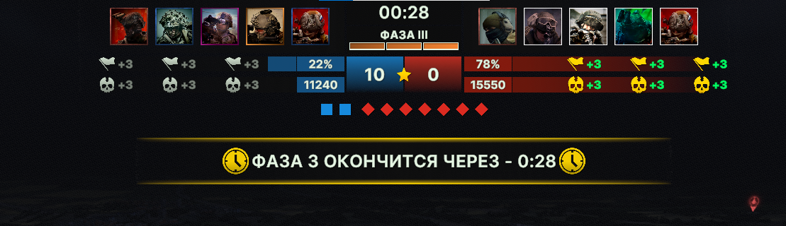 Механика компенсации очков победы теперь начисляет 100 очков за достигнутую военную цель вместо компенсации, основанной на очках победы противника.