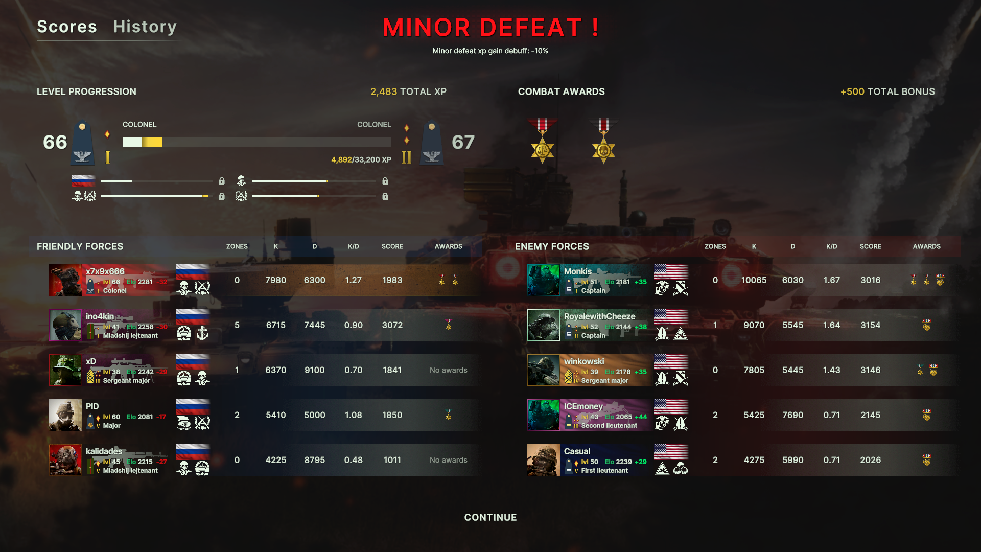 Мда, 1 ливнул, 1 умудрился обосраться сильнее чем ливнувший, тем не менее мы 3в5 оттерли противника к его респу, забрав все точки кроме 2 и при этом проиграли, тупо из-за того что 2-ое куда-то всрать по 15к поинтов умудрились.