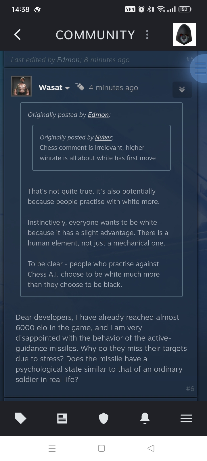 >>50268250 Вы неправильно всë это воспринимаете. Все эти баги на самом деле не баги, а фичи. Не едущие юниты, пропавшие самолëты, неточные параметры, всë это добавляет реализма, интересности и изюминки игре. Ведь танк может застрять, сломаться, самолëт сбит по пути или тупо ракет нет на базе. Ведь это может у всех случиться - значит баланс. Реально новый уровень игры жанра ртс, а у вас бомбит.