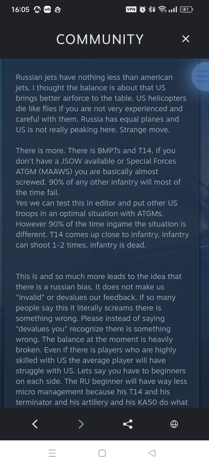 Даа, нормально сделали, все дальнее пво у рф в какую-то жопу спрятали, с300 в катках вообще не видно, зато у противника патриоты за 2 копейки под каждым кустом, расстреливаешь, расстреливаешь, а их меньше не становится. Ну а еще, че они там с пво дальним намудрили, схуев у меня бомберы идущиена бреющем несколько раз сбивались им с другого конца карты прям над елками? Ближнее пук-пук, я из-за домиков мелькающих не могу навестись, а эта хуета как-будто не имеет ограничений высоты теперь, хорошо хоть вертолеты не сбивает.