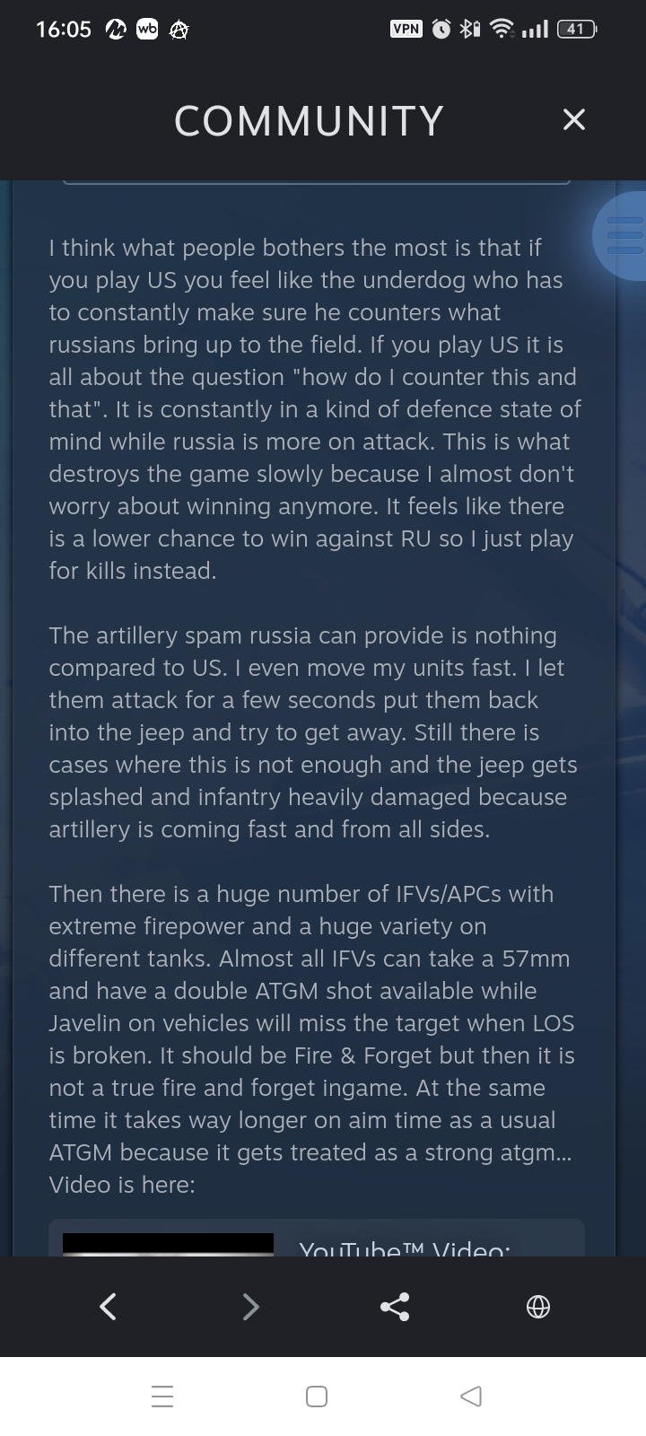 Ну и еще ахуенно сделали с джавелинами итд, которые по тепловому следу наводятся, раньше они хоть в лоб попадали и создавалась хоть какая-то иллюзия приближенная к реальности, а теперь все подряд лопается от одного пука, хотя на деле они должны по крайней мере с первого попадания только рутать и небольшой урон наносить, тк ирл всегда в движок прилетают, а боевое отделение целое остается. Вот если бы они со второго попадания взрывали все подряд, после того как машинка остановилась я бы еще смирился. Раньше хоть такая хуйня случалась только при встрече с вертолетом.