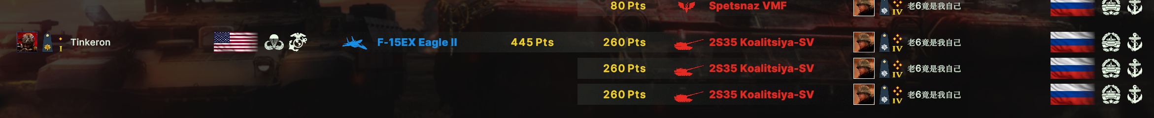 Плюсую, взял 2к на РФ, потом пересел на США, которыми играл пару раз до этого, еще 100 эло налутал танк+соком за вечер. Сентик, f-35, айронтандер, silent hawk, яйца, танки, бредли, тапки и блять куча охуевшей пехоты. Просто тычешь лазером и фраги набиваешь под пиво.
