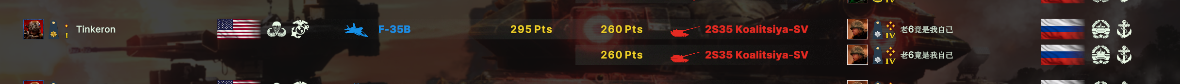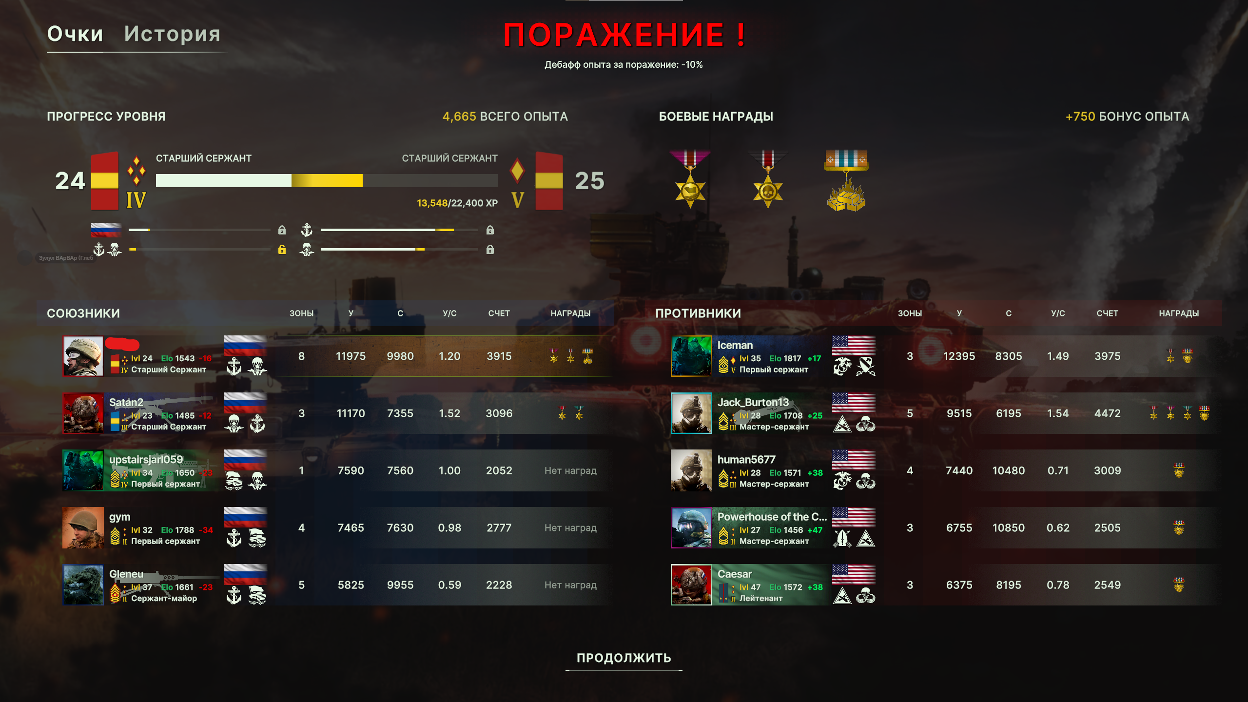Впервые так много наубивал наверно, видимо карта крохотная, единственная с островом. Интересный мачтмайкинг с челиком 1900 vs 800, наверно тащил кого-то наверх, но играл он отвратно кста, спамил самолёты и арту, несколько раз выезжал по земле и при этом такое кд. Меня сминали в ноль один раз в середине игры, оставалось пара суплаев, снайперов и коалиция, горел sudden death, был во уверен в поражении.