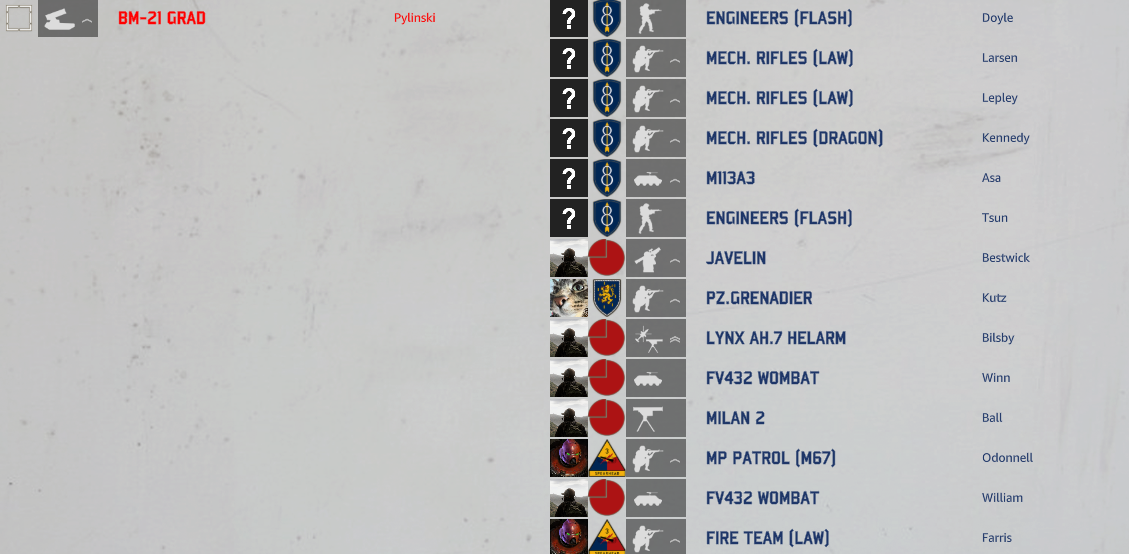 >>50449526 Ща вылезет Сериул с доводами, что БРМ имба и не контрится. А количество боекомплекта у ПТУРов (2) у russkies так и должно быть (один в каз, один в дым).