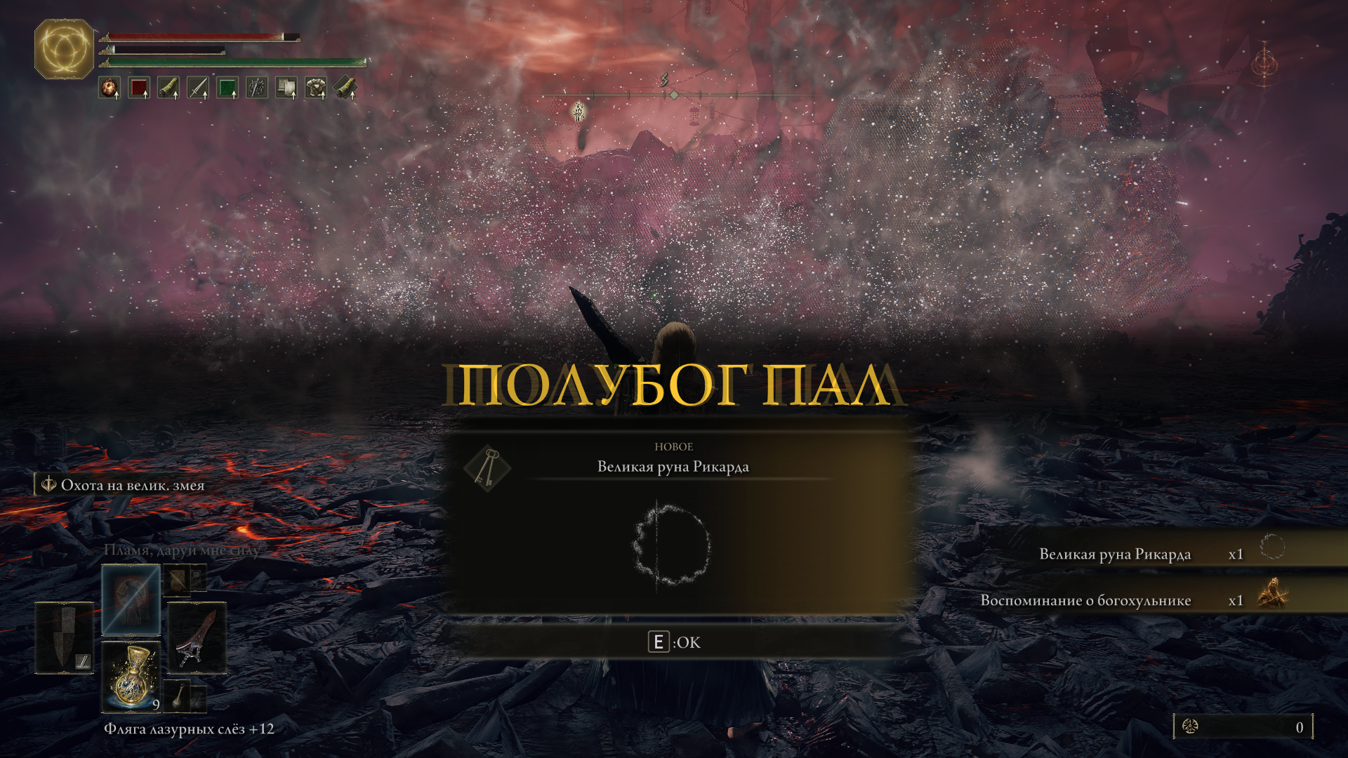 >>50355946 Луна Ранни - очень много урона и -40% к резистам врага на минуту. Лучшая открывашка для почти любого боя и наиэлегантнейшее решение, когда PCR взлетает со сферами. Луна Ренналы - бьет сильнее, но только -20% к резистам. Комета ночи - парные горгульи в Нокроне до тебя даже дойти не успеют. Карианский резак - лучший дпс во всей магии. Спиральный осколок - при правильной раскачке укладывают Пласидусакса и Элден Биста еще до того, как те закончат свою первую атаку. Метательный камень - за три применения сбивает баланс кристаллийцу, за четыре - дракону блестящих камней. Зачарованные земли - +25% к магическому урону, стакается со всем.