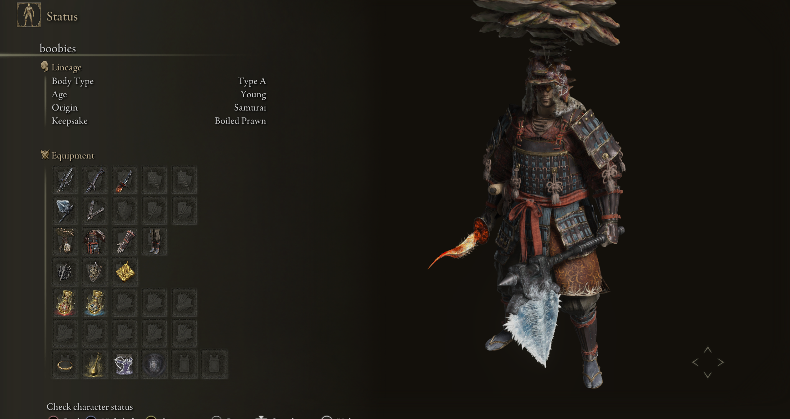 >>50364232 >Это как? Очевидно, без имбомагии (т.е. без магии), без имбомолитв, без использования щитов ибо это зашквар тот ещё, без сломанных (любых) статусных эффектов ломающих игру, без имбо стансбрейка, самое главное без перекача. Ну и без пеплов войны которые тоже игру ставят на изи мод и очевидно без призывов. УГСы возможно ещё стоит добавить в список, но тут 50/50 уже не все так однозначно. А ну и без читерской фляги которая поглощает полностью урон удара, только уклонение, только труЪ на скиле. >РЛ1 с дубинкой +0? Ну эт уже для мазохистов лол.
