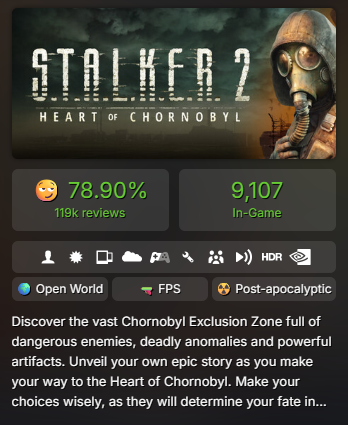 Чё дальше, начнёшь считать скорость постинга в тредах на двачах как элемент игровой популярности? Слился, обтекай. Твой калфилд максимум в топ-10 синглов стима за 2023, а если включить сингл/коопы, то хорошо, если в топ-25 останется.