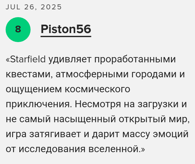 А вы слышали, наш балдушенька Тодда Говарда победил в энтом вашем тырнете. Да. Написал, что его игра про космос плохая и никому не нужна, и обвалил все продажи. Мы вообще-то балдушу в строгости воспитываем, но он объяснил нам с мужем, что Тодд — энто капиталист проклятый. Рассказал, что очень крупно вложился в его компанию, когда в третьем классе учился. Целых 150 рублёв отцовских на диск с каким-то ебливеном потратил, а Тодд его кинул. Теперь балдушка наш стал неуловимым мстителем и всех в тырнете предупреждает, шо Тодд обманщик и мошенник.