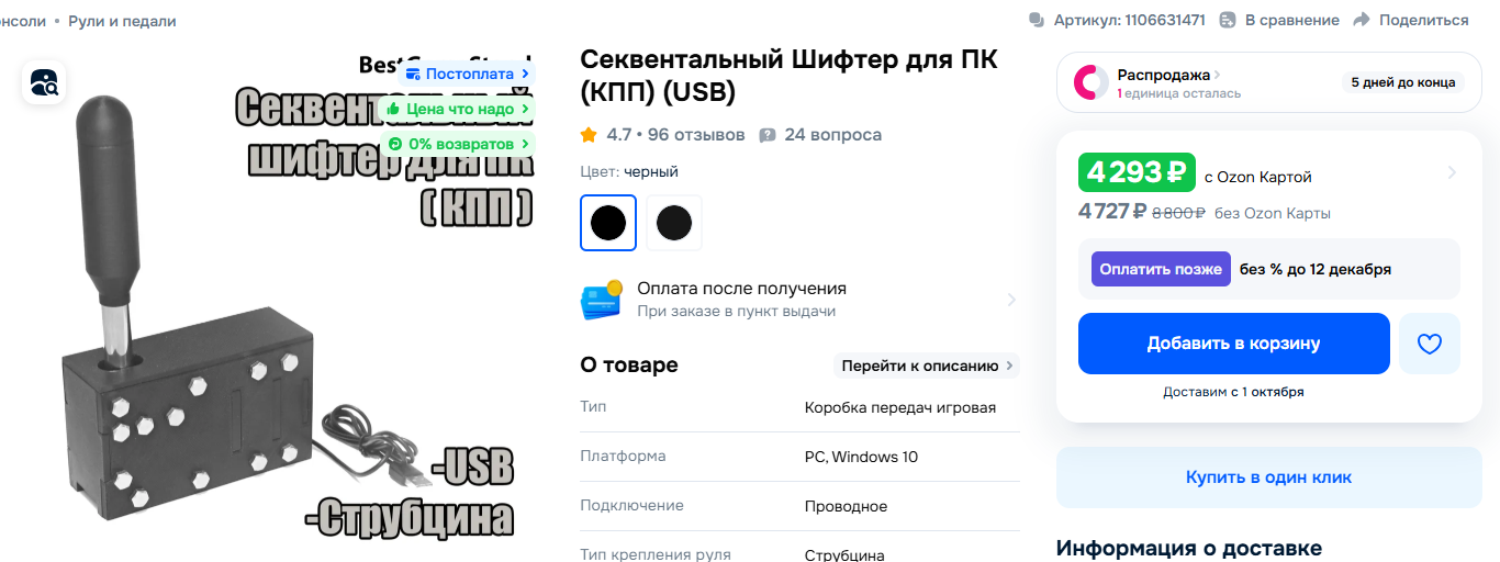 С шифтерами все еще хуже - большинство из них не имеет оси, а хочеца. Есть дешевые китайцы, но у них расположение ручки переднее - хочу чтобы параллельно шифтеру было да и тянуться, уверен, неудобно будет. Учитывая, что димсимовских аналоговых уже нет( да и длинную ручку чет рот ебал), остается только снова наш zmaking. Да, выглядит как говно. Но внутри жулезный и по отзывам очень даже приятный и надежный. Вышеописанных минусов не имеет, из чего на данный момент для меня является фаворитом. Че думаете? К слову, мне димсимовский хуй уже два месяца обещает поступление секвенталок "к концу месяца", и нихуя в итоге не приезжает. Неприятно.
