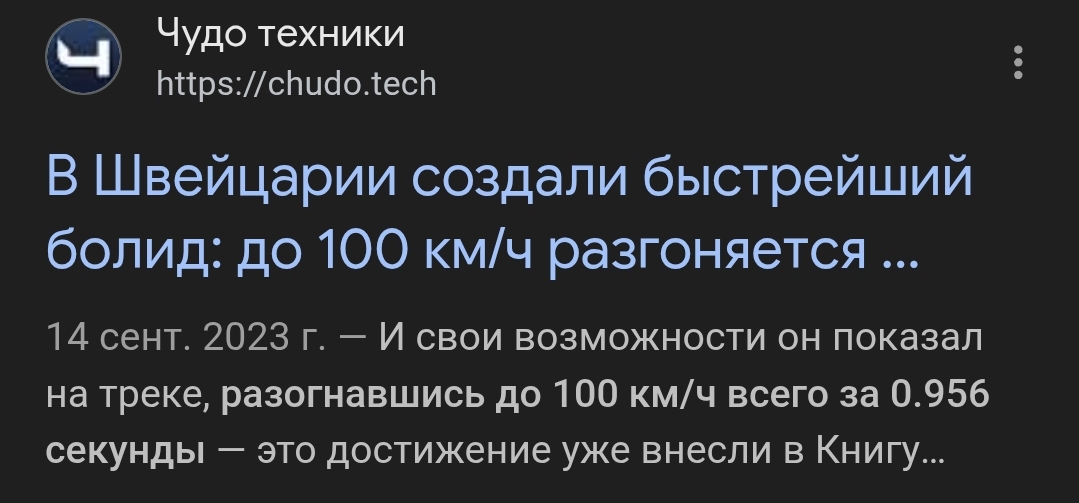 >>50268297 В лучшем случае за 1,7 а не за 0,1. И в болиде разгоняется весь боллид и все твое тело одновременно. И при 100км/ч боллид тормозит 15 метров чет ви нахуй так не заносит.