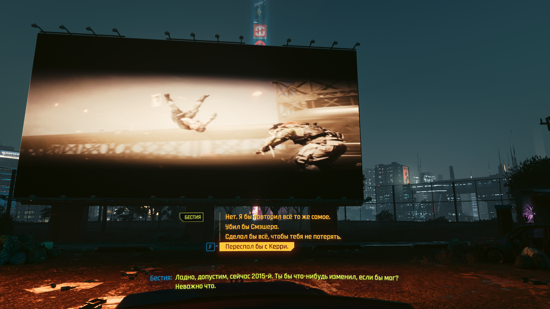Если с Джонни сняли энграмму, значит Арасака знает всех, кто участвовал в нападении на башню и значит они в курсе, что Бестия помогала заложить ядерную бомбу. Да и Смэшэр видел ее лично. Бестия известный фиксер и всем известно, что она тусуется в Посмертии. Вопрос: как в этом охуительном сюжете Бестия открыто тусуется в соседнем квартале от штаб-квартиры Арасаки, ведет свои дела и она до сих пор жива?