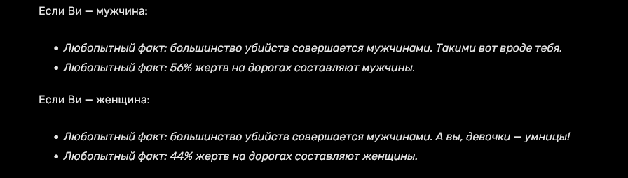 Бля, для кого делаются квесты в фантом либерти? Кекнул с квеста где пацанчик вез с хансеном груз, отличился в бою, его обожаемый босс его похвалил, а он в итоге решил спиздить часть груза. За что и был покаран. И мне его предлагается пожалеть? Буквально есессный отбор и отбраковка биомусора