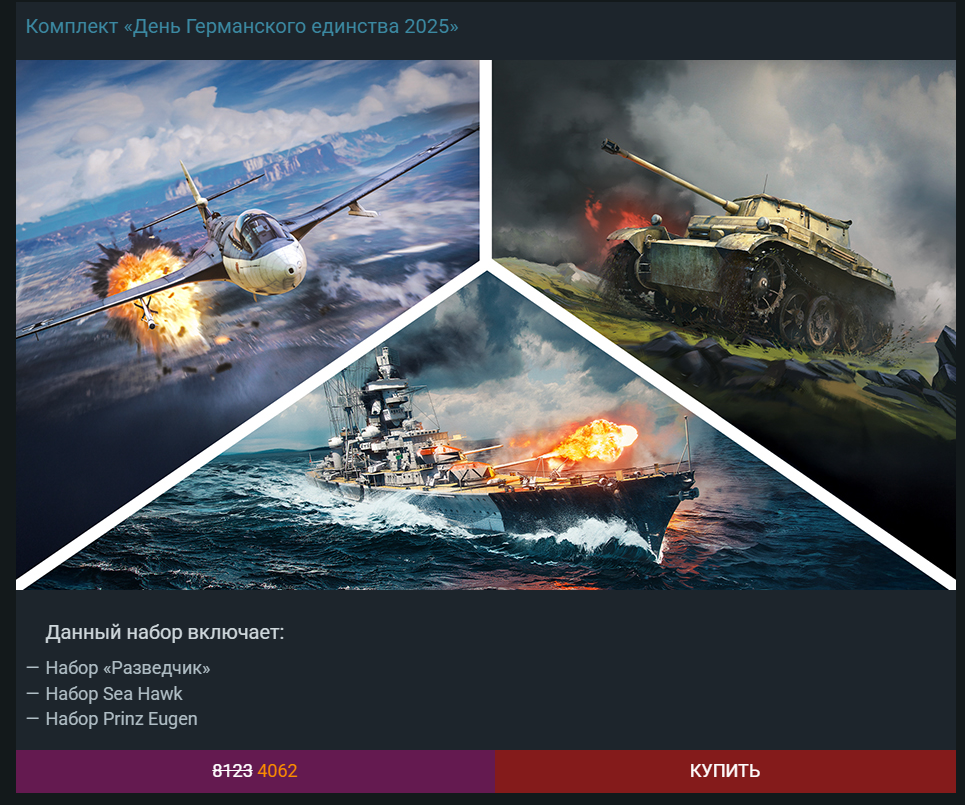 Скорей бы уже скидки, хоть на американцах смогу поиграть. А то наисследовал говна, а покупать дорого. >>50274388 Тут только немецкий набор стоит своих денег, потому что там униКАЛьная техника которую за голду купить нельзя, зенитка низкого ранга и единственная в игре прем штука. Остальные наборы кал.