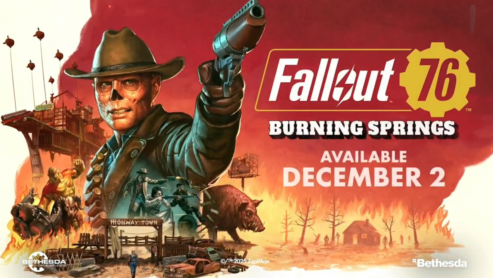- Следующее обновление будет называться "Burning Springs" (Горящие Источники). Обложка на первом скрине. - Новый регион под названием "Горящие источники", расположенный в Огайо (левая часть Апплачии за рекой). - Центральный хаб для игроков "Highway Town" + 20 новых локаций. - Новая сюжетная линия. - В игре появится тот самый Гуль из сериала (озвучен Уолтером Гоггинсом). - Два новых публичных события с уникальными наградами. - Система "Охоты за наградами" - повторяющиеся квесты с прогрессией по сложности. - Новые оружие, броня, костюмы, легендарные свойства и т.п. - "Нулевая Миля" переедет в новый регион, т.к. в Долине Скайлайн стало небезопасно. Там же появится новый торговец Винди. - Дальнейшее развитие Долины Скайлайн. - Босс "Бродяга" пока откладывается.