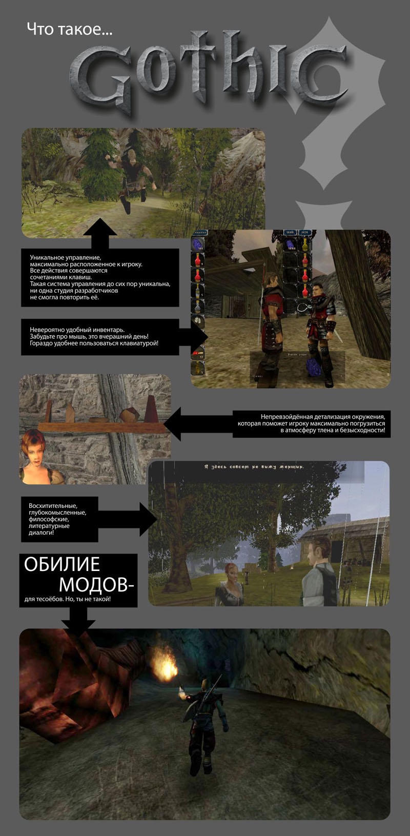 Ну не знаю, чел. Я три части Готики прошёл полностью, в то время как Морровинд начинал неисчислимое количество раз и ни разу не прошёл, всегда дропал. Больше и пробовать наверное не буду, только если с модами каким-нибудь. Морровинд у меня ассоциируется с невыносимой боёвкой, сломанной имбалансной прокачкой, хуёвыми квестами и такими же диалогами, в которых нпс энциклопедичечки может рассказать тебе лор всего мира нахуй, но сам как персонаж скучнее табуретки. ЗАТО КАКОЙ ЛОР, ОГА!