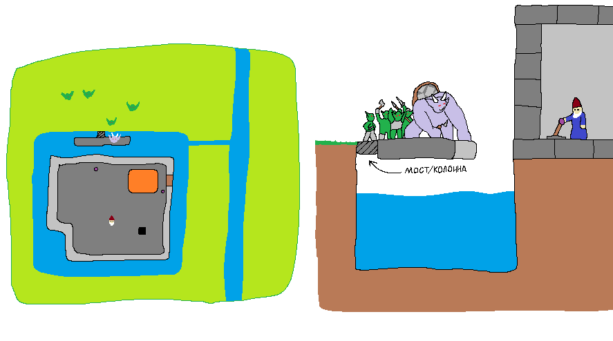 >>50306724 >Делаешь так чтобы вручную включить ловушки типа рычагом иначе дальше не пройти - профит. Я ещё думаю, что можно ещё систему "ключей" симпровизировать по желанию. Например поднятый мост закрывает проход, рядом плита, которая его открывает, но рядом стоит статуя крандла держащего череп, что значит что эта дверь "на замке" и открывается она соответственным "ключом" и теперь тебе надо найти тотем из черепа крандла, чтобы положить его на плиту, использовав как "ключ", и таких дверей может быть несколько с разными существами олицетворяющими разные "замки". Как цветные черепа и карточки из дума с соответсвующими им дверями. Главное, чтобы по весу тотемы проходили, а то плита не прожмётся.