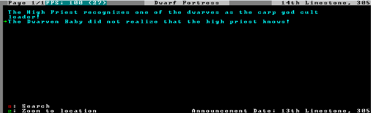 Сдох король. Я даже заметил только через год. Сдох как-то мучительно видимо потому что даже трупа не осталось. Полез в легенды, а там написано что убийца это печально известный Id Emeraldbridge ебанутый дварф подросток, постоянно портил сооружения, убил моего герцога-вампира, всю свою семью убил, уже пять лет как сдохший. Что это могло быть? Мамка этого Emeraldbridge которая тоже уже пять с лишним лет числится как мертвая, тоже умудрилась стать причиной смерти аж двух дварфов через пять лет после своей смерти. Оба погребены, не призраки. Новый монарх так и не пришел кста, хотя крепость все еще считается столицей, я уже и три божественных артефакта собрал, теперь без монарха толку ноль. Кстати я так понимаю из-за стим релиза дети теперь аж до 18 лет таковыми являются, что еще они перелопатили для стим и есть ли какой мод который всё это дело фиксит, потому что юниты которые 20 лет нихуя делать не могут это пизда полнейшая