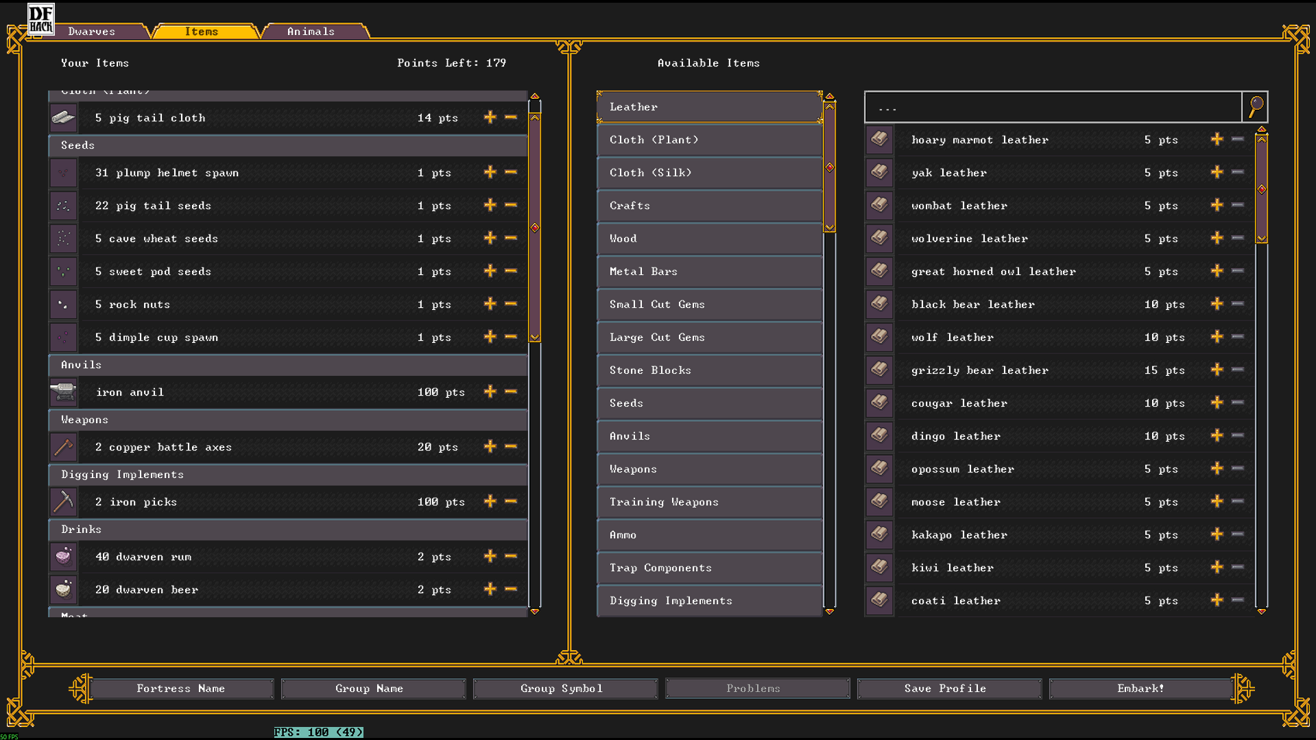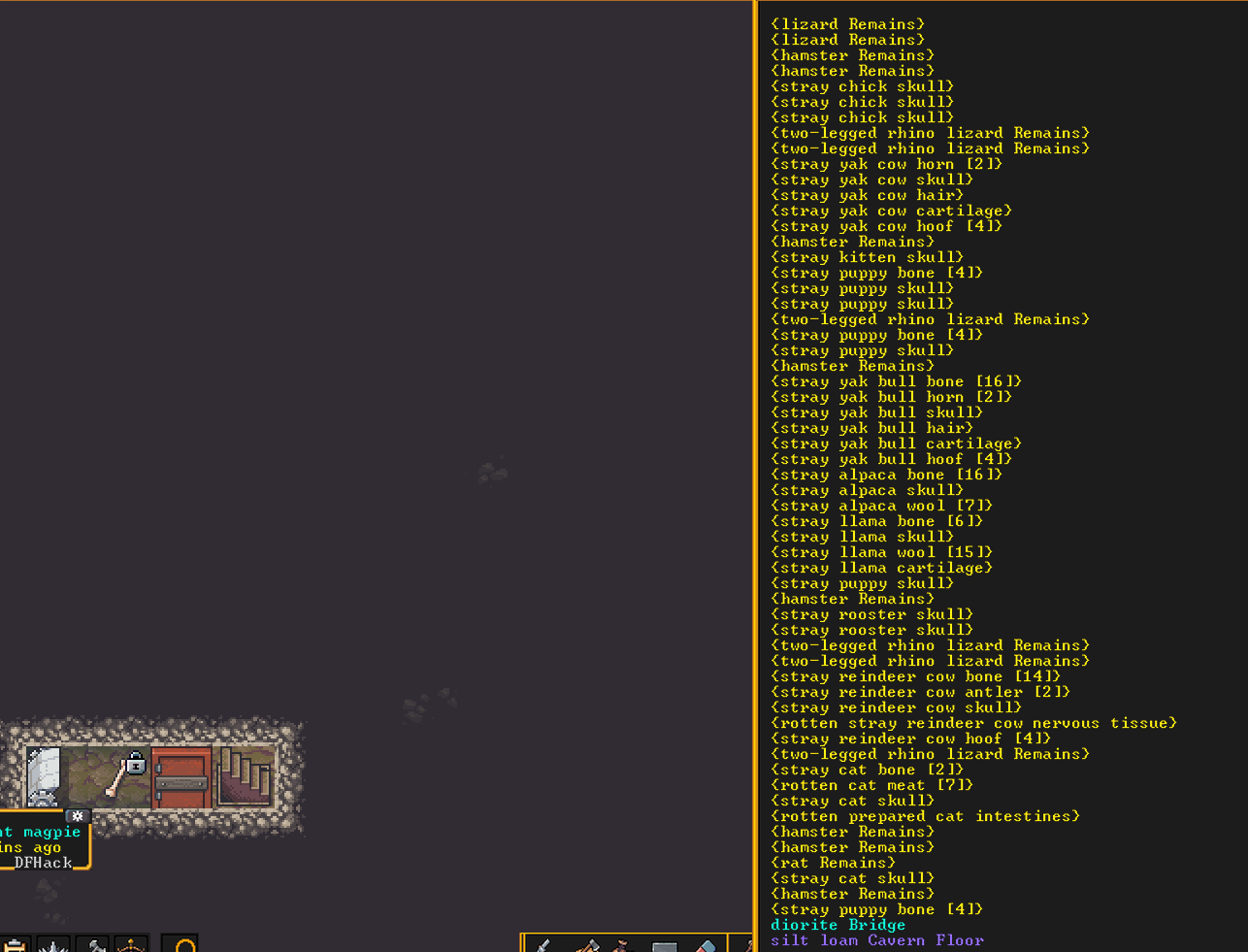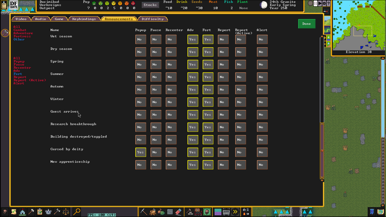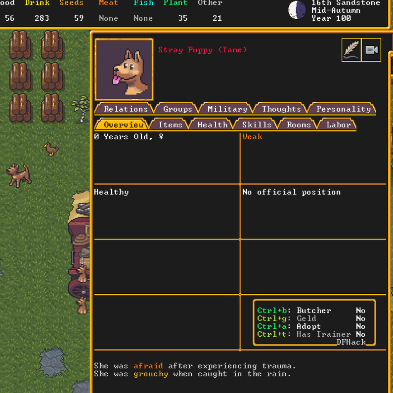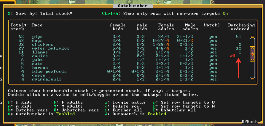 Сап. В какой-то момент DFhack перестал вообще сохранять все что я в нём нарулил. Перезапускаешь игру и все настройки на дефолте. К примеру autobutcher я тонко настроил мол оставлять одного кабана и 30 свиней. Или что конкретный склад должен помечаться на сброс мусора. Или что ебучий вампир вмурованный в стену не stranded и ему норм. И так далее по мелочи. В настройках самого DFhack есть кнопка автостарта какой-нибудь хуйни и она вроде даже запускает её но с дефолтными настройками.