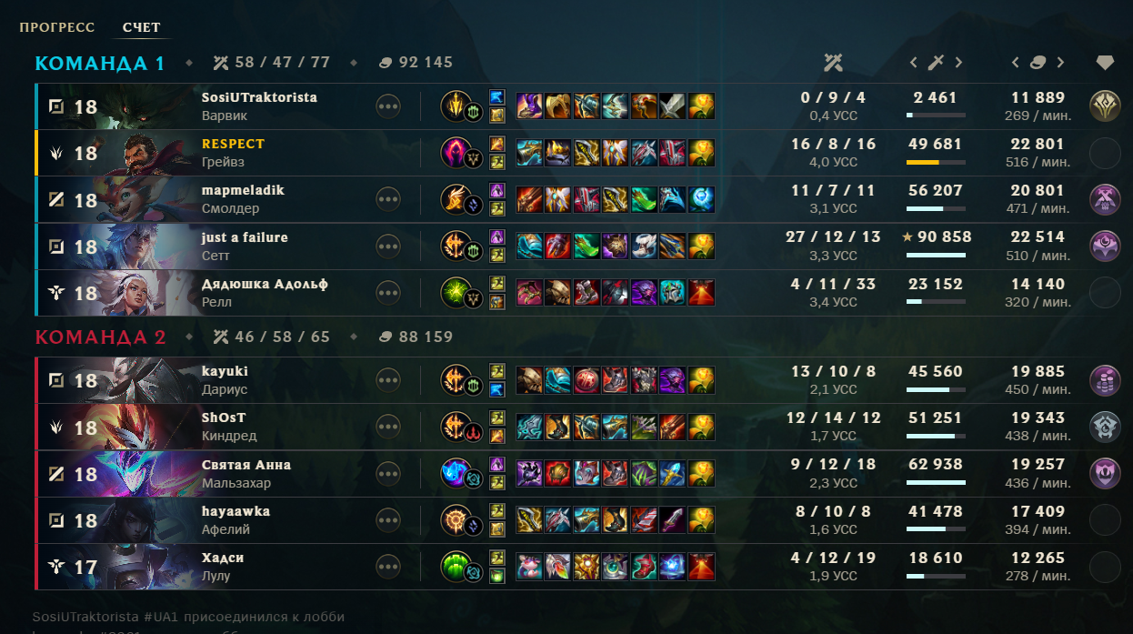 Забавно что при таком счете я топ 1 по фарму на карте. Алсо билд скам, без бурста враги тупо убегают от меня и кайтят, лучше дальше криты буду билдить.