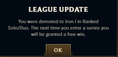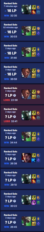 Е3 ранг типы все еще на миде играют сука 150кс на 38 минуте, отставая от люксы сапорта. Может быть он роумил жестко? Нихуя. Векс ходила фармила килы на сайдах, это говно в вышку долбилось афк. Позвал убить уя на дрейке, это подошло, когда дрейк уже кончился и уй убежал) И дегрод афк сплитящий на енэ без тп. Просто пиздец.Абсолютно рандомный разброс по скиллу на любом ранге, просто ничего не значащие циферки, мне кажеться даже в мастере сритокал также пиздато балансить будет. Может общий скилл там выше, но все равно кому то чаликов задротов, кому то лоу мастер рачков с разницей в 1000 лп кидать будут. Ахуительный подбор игроков конечно.