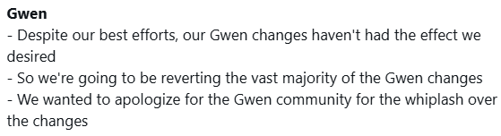 >>50372127 Ну на самом деле я бы сказал дариус самый сложный. Мб вейн. Гвен тебя особо убить не может, особенно если ты фейзраш берёшь. Ну ты продашь сколько-то кса, но это норма за сиона. А в дариуса или вейн ты будешь либо каждые два вейва за фарм умирать, либо не минус-30 как от гвен, а минус 80 к 20 стоять. Но офк лейтгейм дариуса послабже, а вейн сильно уязвима к гангам, да и если она без флеша там есть способы переиграть.