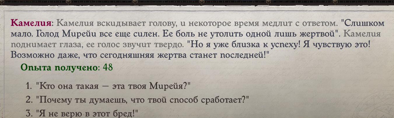 >Девушка вздрагивает, но не отдёргивает руку. Она сжимает вашу ладонь своими сухими горячими пальцами. >"Я верю тебе. Ты должен быть реален — я не хочу думать о мире, где это не так".