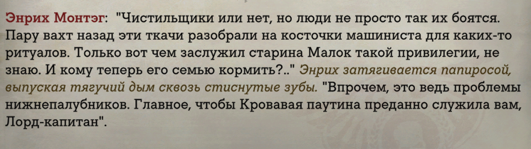 Смотри и вникай. Тассера - годная планета, каноничный феодальный мир с интересным сюжетным твистом с подменой аж два раза. Сами арбитры как фракция переданы хорошо. Новый класс не имба, как танцор смерти\палач связка, но при хорошей сборке показывает приличный урон, да и дробачи мастхев там играют. Захват Бессердечного и его функции по ходу игры тоже отлично вписаны, алсо, если верно говорю, то именно в этом длц тебе дали возможность с собой эскорт кораблей таскать, что тоже на геймплей влияет позитивно. Тема с десятиной, с судом, где судья ты, и судом, где судят уже тебя, что и есть основной твист дополнения кроме брата теодоры и ее задумок на десятину сами по себе довольно захватывающие. Новый напарник - ну ИМХО слабоват в плане характера, если сравнивать с напарниками из основы, типа деда Абеляра, аристократички Кассии, монашки Аргентины. Хотя... Как чисто служебный Глухарь он прописан неплохо. Пидорская темка спокойно игнорируется, хотя признаюсь, стыд испытывал от некоторых функций в диалоге. Ну это видать для пидорасов эти строчки и писались (или жирух), чтоб охваты чутка поднять. В целом ДЛЦшка то неплохая. А что, кроме гомонегра, не понравилось тебе, и почему?
