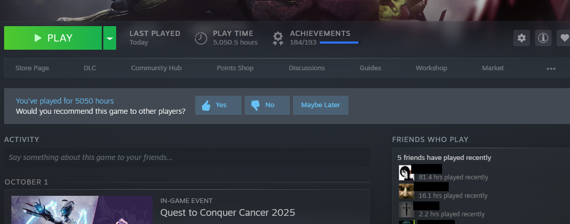 >>50333376 Если сделал дейлики - сходи поделай что-то ещё. В качестве предельно тупой деятельности "в любой момент" это пиздуешь на ссаный циркулюс вскрывать релики. Сталь и траксовая луаплазма для скупки-продажи-растворения мистиков у йонты приложится.