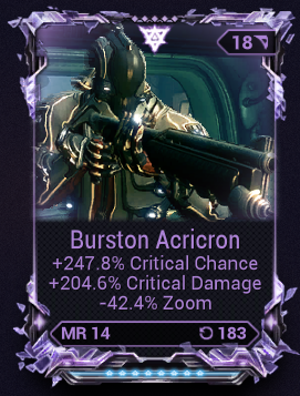 >>50336112 Да с болтором я проебался, он хуже братана, не помню с чем я его перепутал. Лутай вепрь aka boar. У меня говнина с квеста по 6к бьет с 4 модами, кидай билд, заодно кидай какие у тебя моды есть. Против корпуса тыкай магнит (холод+электро) или просто электро. Я до 10 ранга (вроде) дошел с драгкуном (https://warframe.fandom.com/wiki/Drakgoon), забив его статусами, пронзанием и прочей ересью под завязку. Надеюсь, ты знаешь, что +шанс крита с модов расчитывается с базового. Если у твоего оружия 10% крита, то +100% даст в итоге 20% крита, что полная хуета, т.к. в игре есть обычный криты, оранжевые криты, красные криты, суперкрасные криты и т.д. Это не работает на некоторые арканы (мистики) и некоторые абилки, которые просто дают тебе плоские проценты крита (типа к 10% аркана добавит +45% сверху, итого 55%, но все остальное с модов все равно рассчитывается с базовых 10%, такие дела), но до них тебе еще очень далеко. Собственно, поэтому начальные пухи сосут - для них нужны сторонние баффы, которых у неофита нет. >>50336121 Это я для продажи роллю, для себя есть нормальный мр. Зашо мне в негативе -урон. Вот почему не зум / отдача / скорость перезарядки?