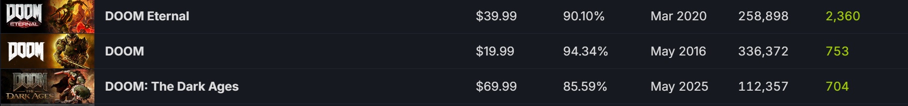>>50314485 15-й вообще. Колесо сансары сделало оборот в 2016, все пресытились, сейчас начался отрицательный подъём на плато спада Дума. Нужно кд лет 10 и новое поколение ультразумеров, чтобы перезапустить серию.