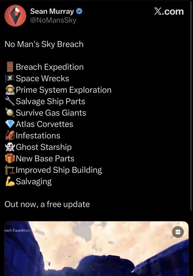 Пока старфилд в ожидании анонса тизера инсайда слива длс, мюррей опять высрал обнову в nms, где добавил дохуя модулей для корветов и заанонсил новую экспедицию про пиздинг запчастей у разъебанных корветов-скитальцев. Я уже успел заебаться пересобирая под гличенную 0.5 сетку с самого утра, а там еще обещают навалить уникальных экспедиционных модулей. Когда тоддик сможет повторить?