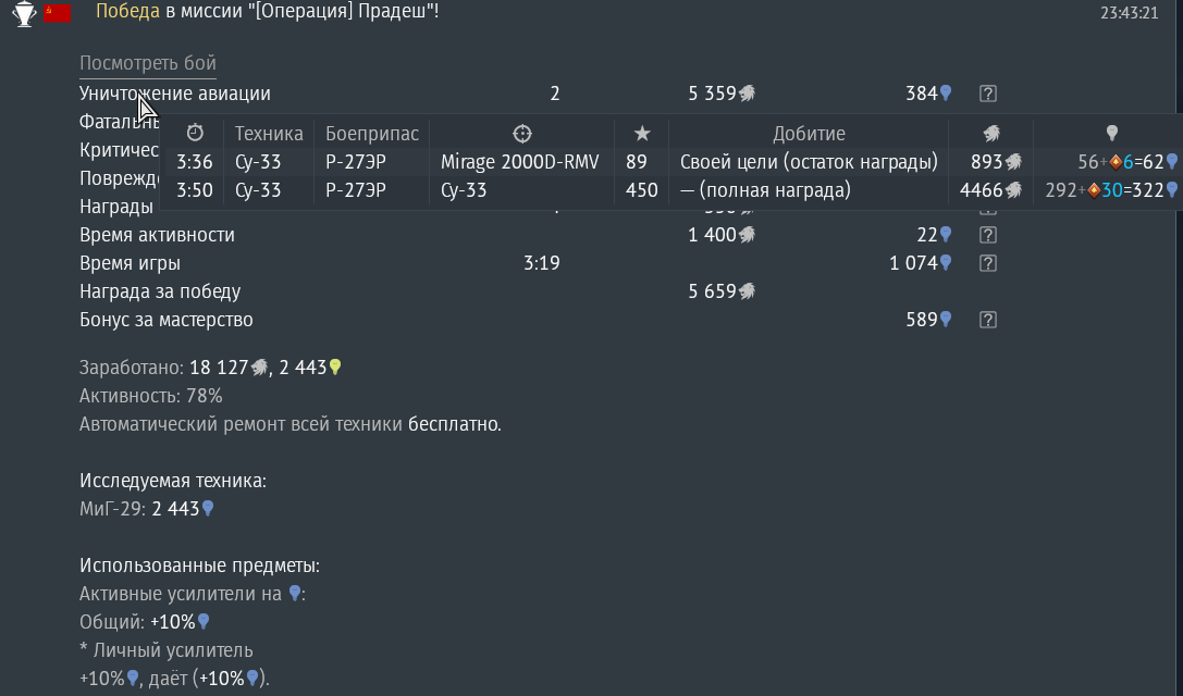 Короче, сыграл сегодня ~25 боëв на 9-12. Смог сделать 5 честных фрагов, 27эр пока не вкачал. Даже не понимаю, это я неправильно играю, или самолëт кал. На всех машинах прошлого ранга было 2+кд, правда давно. Из очевидного у него такой же никчëмный радар, как у 23мла, в остальном вроде как хороший самолëт, но играть хотя бы на среднем уровне не получается.