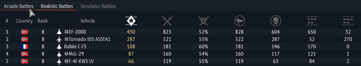 Вообще забавно как тундра поощряет быть анскиллом в АРБ топовом. Чем больше ты анскилл и летаешь на похуй с пивом в руке, забив на все правила реального воздушного боя, тем выше стата.